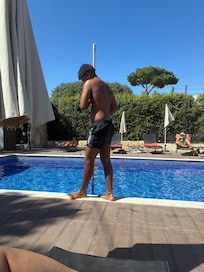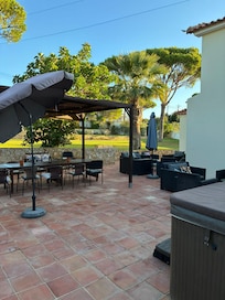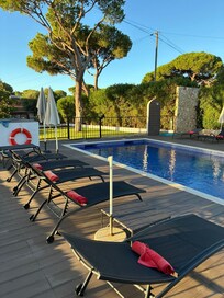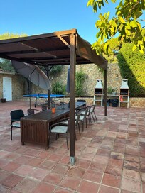 Terrassen Àr mycket stor och har sittplatser och bord och stolar för upp till 18 personer. Det finns 10 solstolar runt den helt grindiga poolen med parasoller för din avkoppling och solbad.