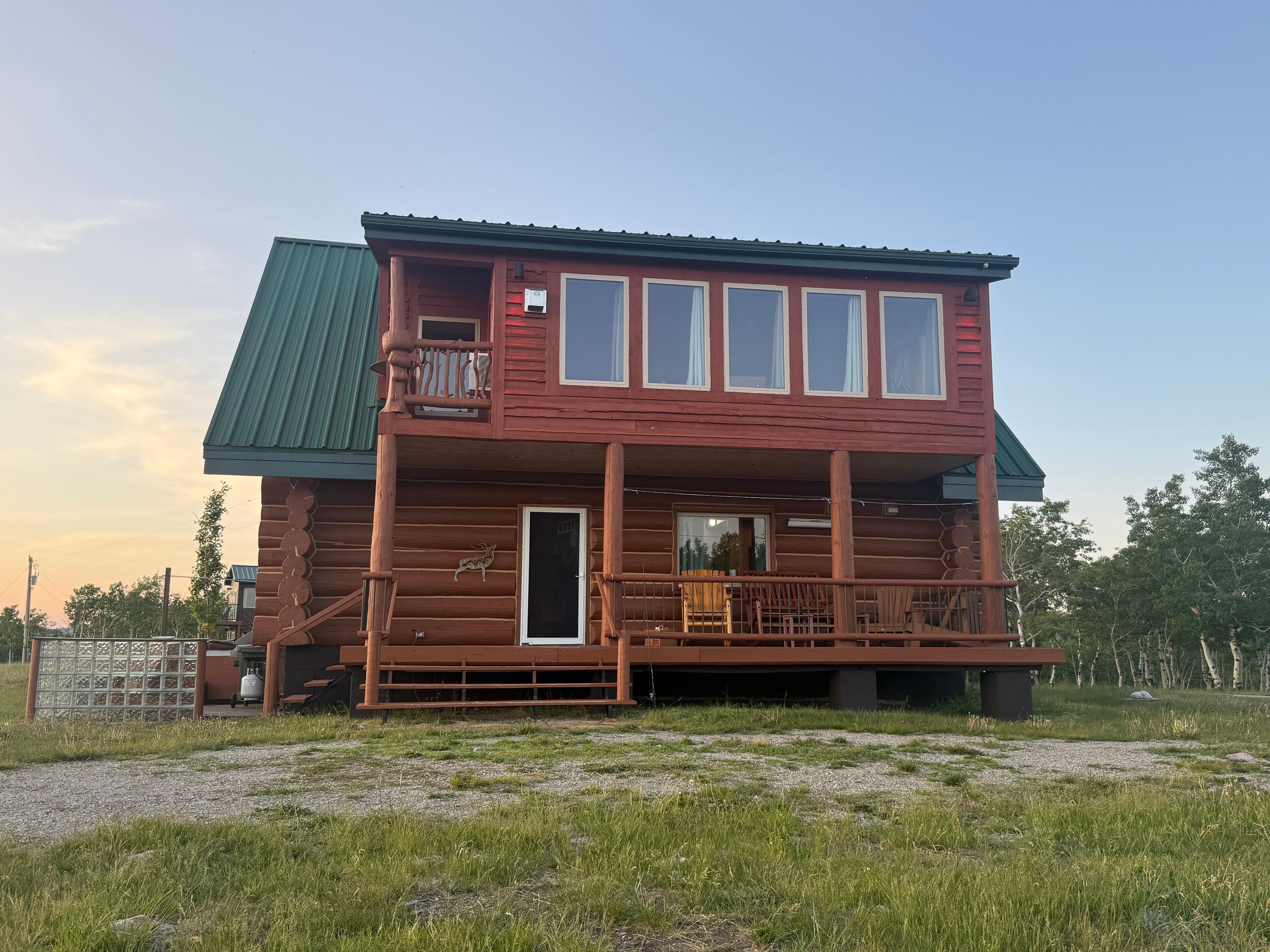 ĂvervĂ„ningen Ă€r ett handgjord trĂ€ med plats för alla gĂ€ster med 300 ° fönster som möjliggör visning av hela Babb / St. Mary Area. Det finns ett litet övre dĂ€ck för djurvisning och stjĂ€rna. Stugan ligger i en Dark Sky-zon som möjliggör en otrolig start och tittar pĂ„ nordljus i norr pĂ„ sensommaren. Den angrĂ€nsande grannen erbjuder bĂ„de trail ridning eller ATV-Ă€ventyr.
