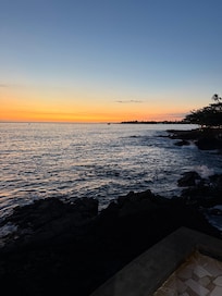 Our family has always dreamed of owning ocean front in Hawai'i. There is nothing quite like going to sleep to the sound of ocean waves, enjoying a cup of coffee in the morning breeze while searching the ocean for dolphins or watching the surfers, or drinking a glass of chardonnay while watching the sun set over the water. We also have a number of friends in Kona, so it is our small home away from home.