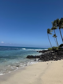 To find our perfect Hawaii property, we wanted a lot of things. Direct ocean front. Amazing views. A quiet complex where we wouldn't hear road noise. Walking distance to a swimmable beach. A heated pool. Walking distance to grab a cup of joe or an iced cocktail. Air conditioning for those days that are on the hot side. So when this condo in Hale Kona Kai came up, we decided our search was over. We hope you do too!