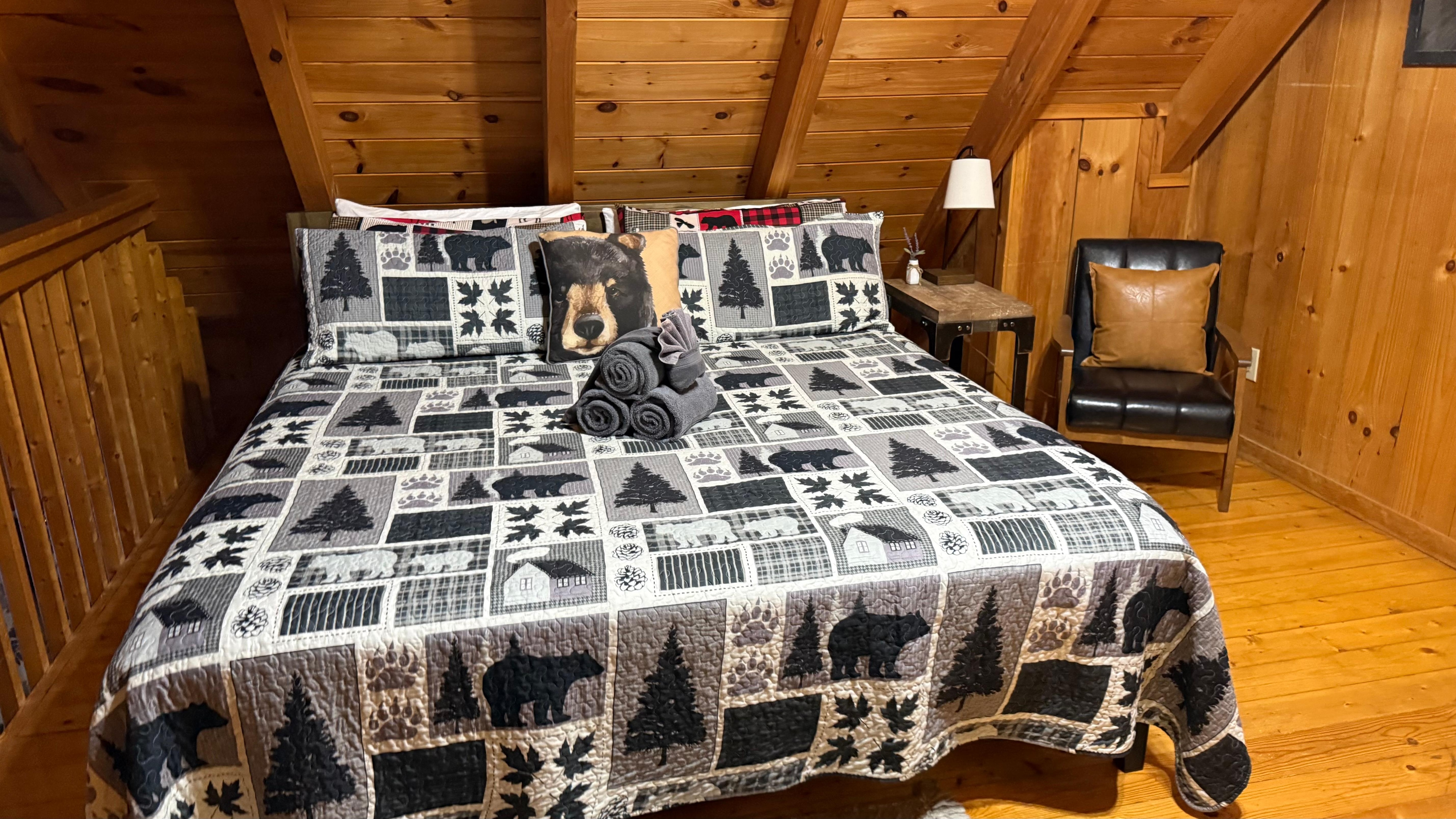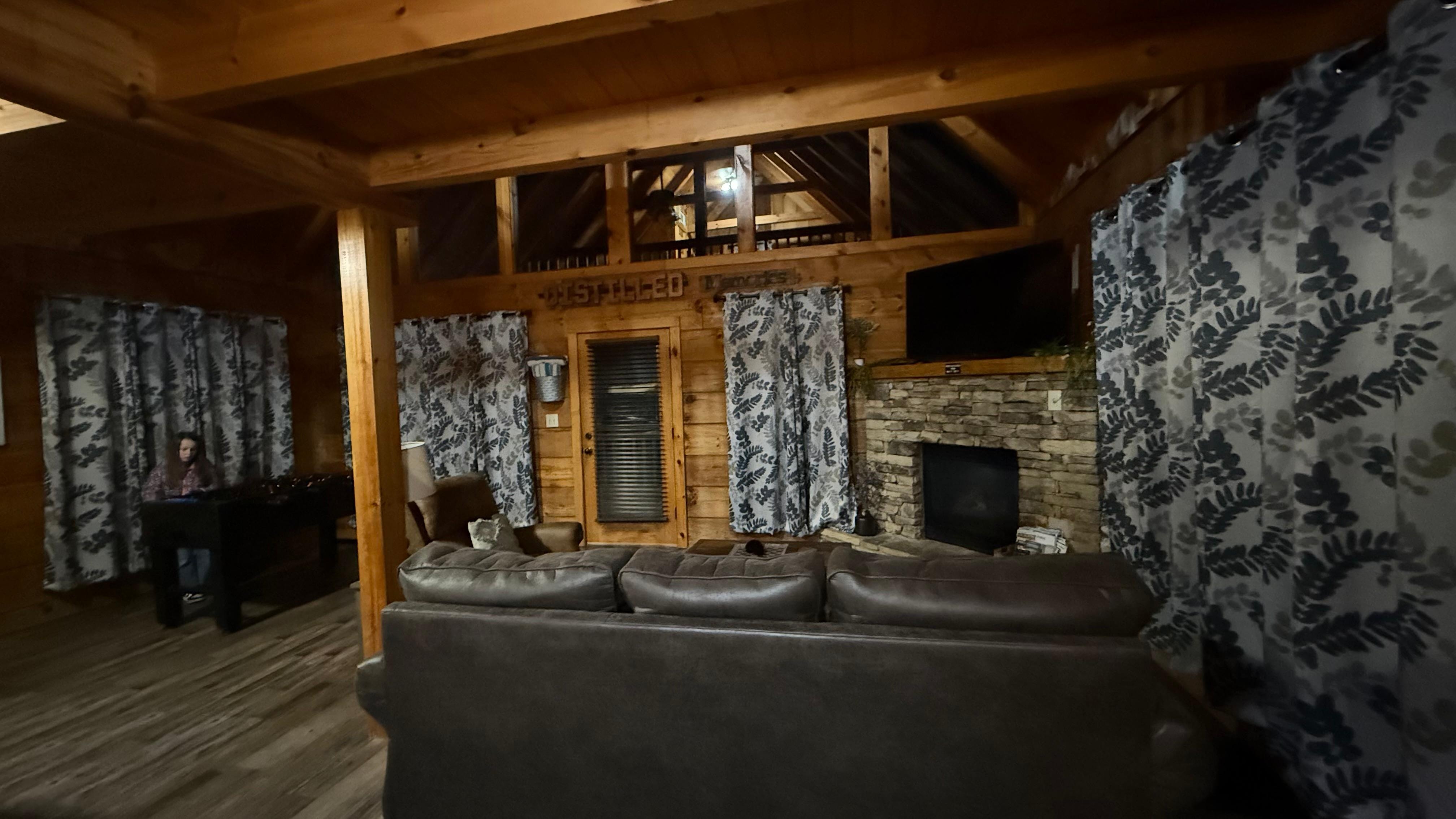 A one king bedroom, 1 œ-bathroom cabin with a sleeper sofa for 4 people. Only 8 to 9 miles to Pigeon Forge & Downtown Gatlinburg, Distilled Memories feels like a piece of home in the Great Smoky Mountains. Romantic and cozy, it features lovely touches like a beautiful stone fireplace, all-wood interior, Roku TV. When you want to get out of the cabin, you'll have a short drive to great restaurants, unique shops, art galleries, fun attractions, and more!