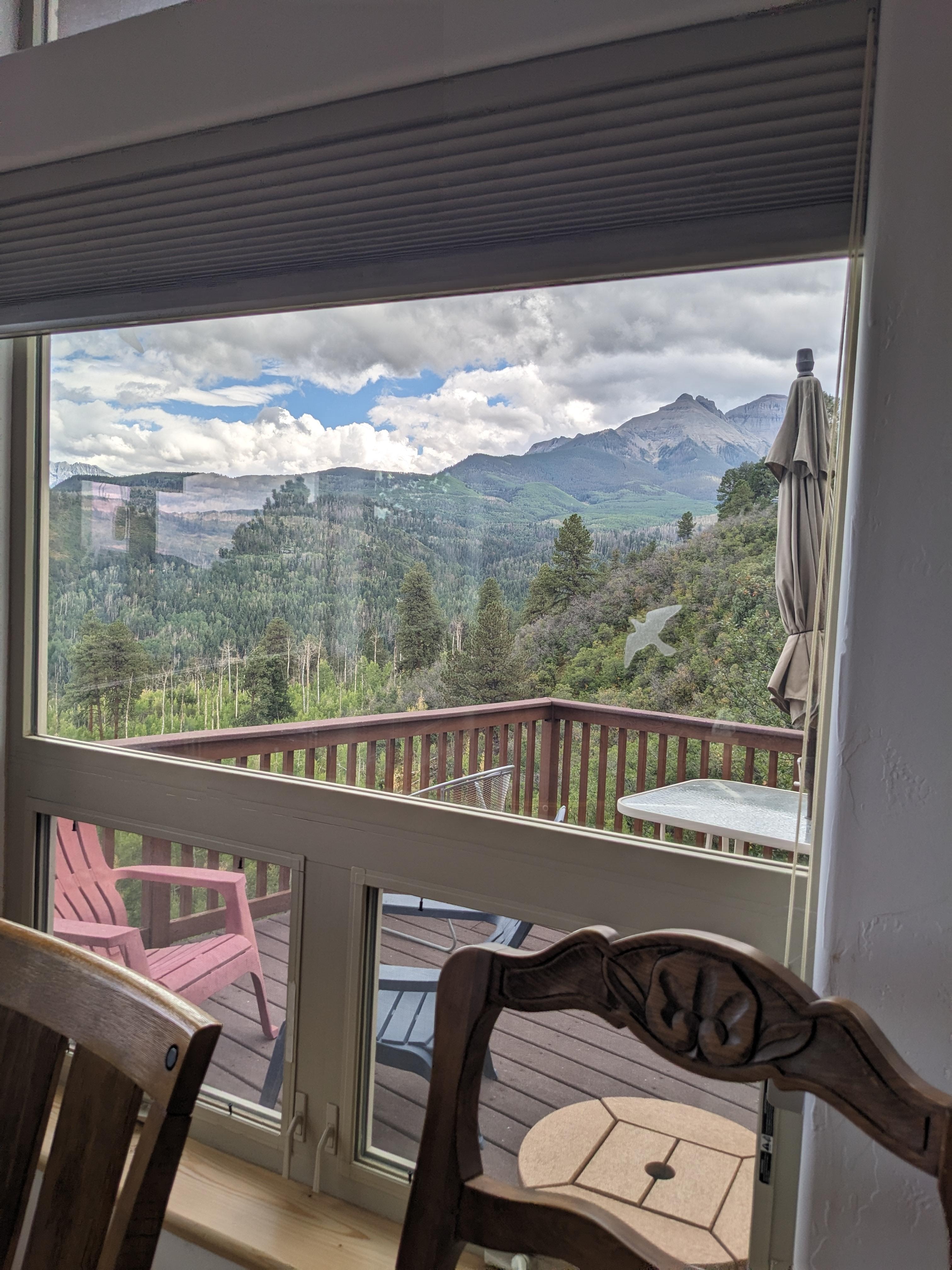 This lovely home is snugly tucked into the very top edge of a 9,000ft. ridge, boasting spectacular 180 degree views over the Cimarron and the Sneffels ranges. The house is secluded at the very end of the road with itâs own cul de sac, hence no traffic other than that which is intended for this address.