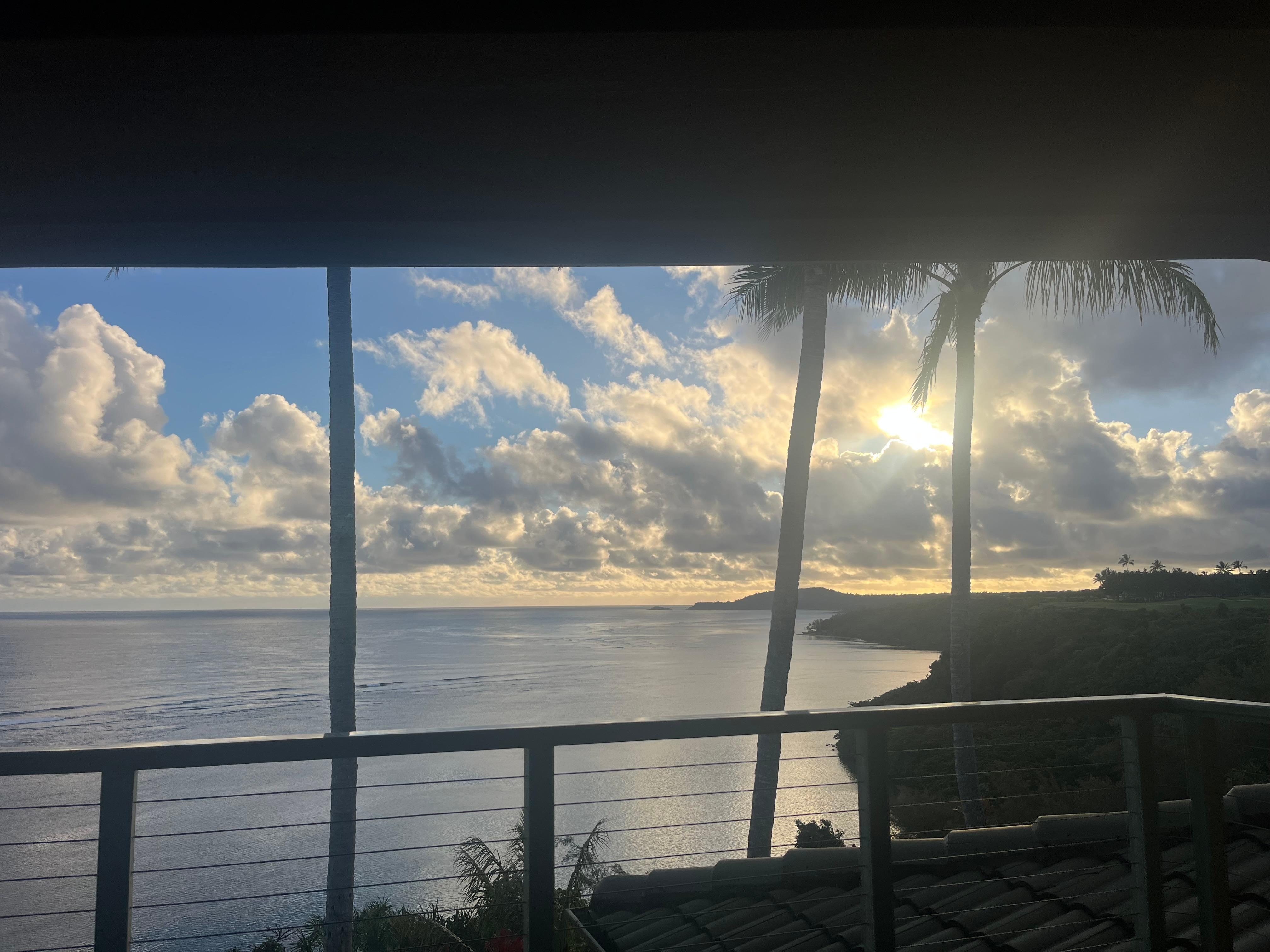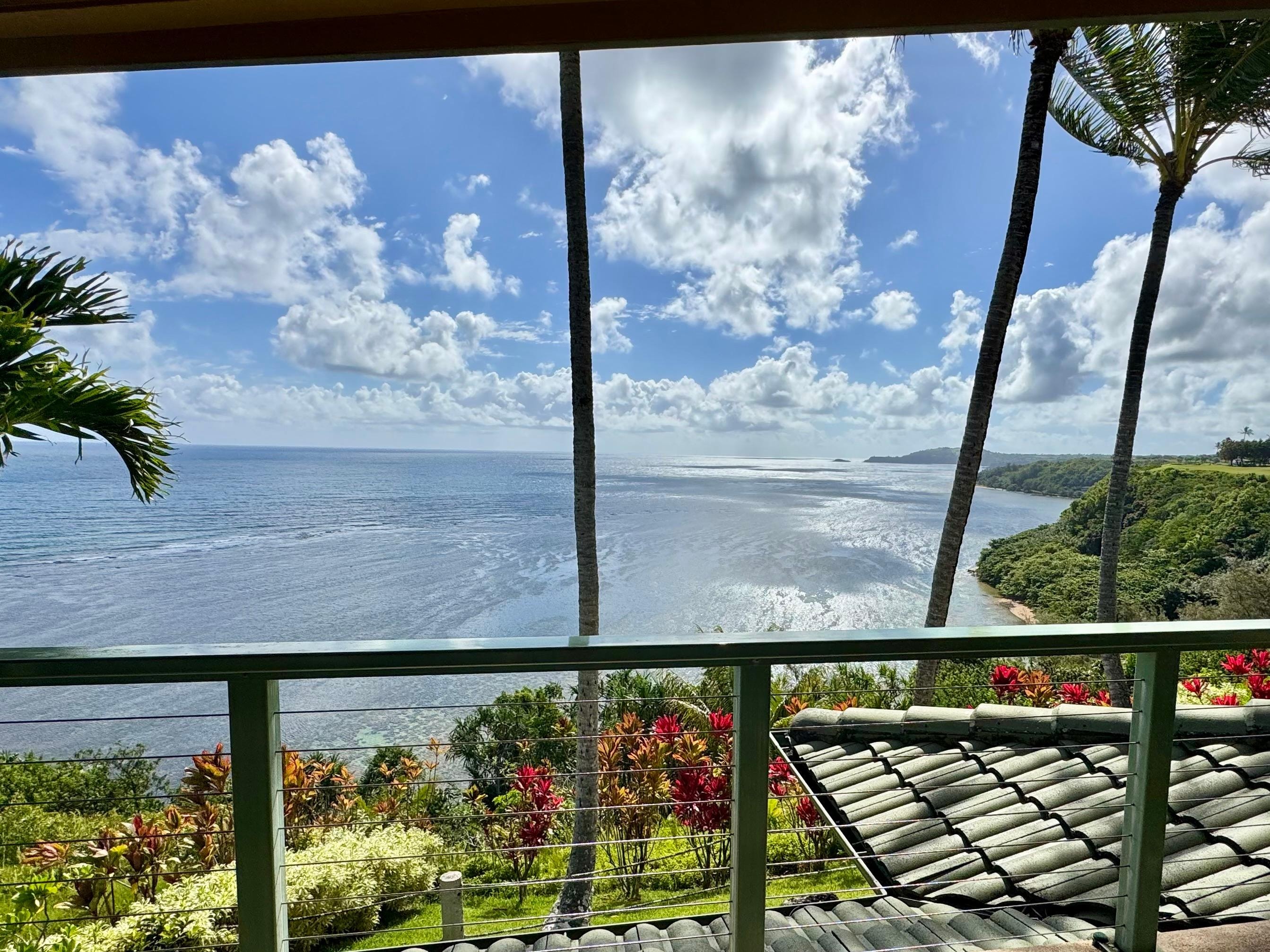 We just wrapped up our stay at Edge of Cliff. What an amazing location and property. The views from the back deck were simply spectacular. We could see miles of the Anini reef system - the water was so clear you could almost see the fish and turtles swimming. We spent countless hours just sitting and gazing at the view.The condo itself was very nicely appointed and spacious. We were very comfortable with lots of room to spread out. The kitchen had most everything needed to cook all meals. Bill was excellent to work with and we also met the caretakers who made sure that we had everything we needed for our stay.We did not want to leave to come out - but we'll be back!