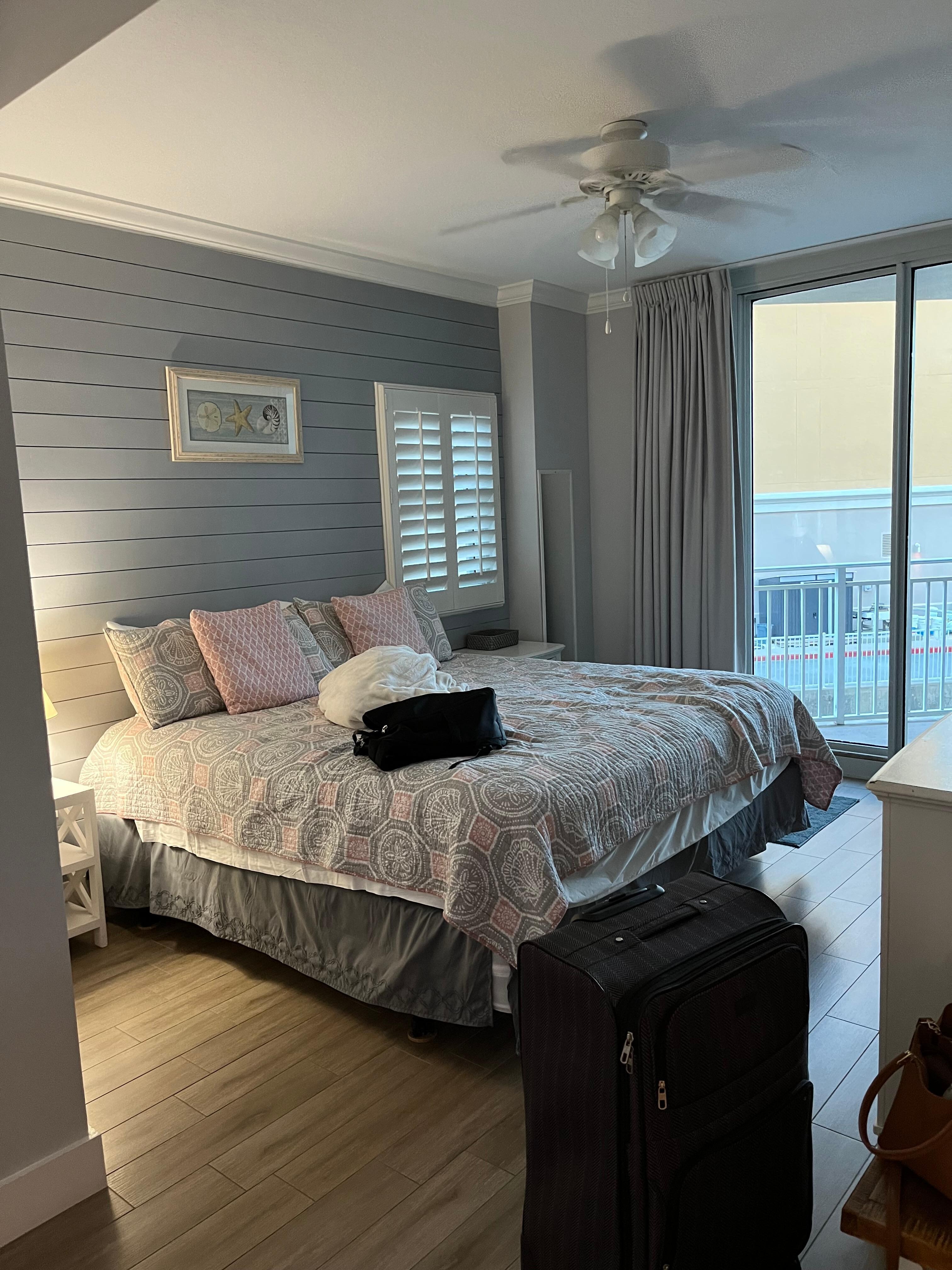 We loved the area & the beach. The condo was clean and as pictured. There were a few downfalls for us, nothing that I felt needed immediate attn from the property mngr. The master bedroom & bathroom were significantly warmer than the rest of the condo. We ran the ceiling fan & kept the shades closed but it never helped. Others that went with us but stayed in diff units on diff floors said the same thing. The rest of the ppl in the condo would be freezing but we burned up in the master bedroom & bathroom. The bed in the master bedroom had sheets on it that were way too big & came off every night. The sheets felt cheap to us too & were not good quality as they were hot & not soft at all. We don’t eat out except for dinner so we had groceries of course which became an issue. The fridge is plenty big but there’s only one small rack in the laundry room (has pans, bowls on the bottom racks) to store groceries unless you crowd your counter top up or put them on the floor which was not happening for us. There was only 1 pillow & one thin blanket for the kids to use for the pullout couch. The walk to the beach is rather long & the walk to your room from the parking garage is really long. The complex is nice but it just wasn’t what we prefer. If you have small children it would be perfect but the teenagers found it rather boring. If you are looking for a stay without small children everywhere then this is not the complex to stay in. Overall it was a nice vacation but not the complex for us.