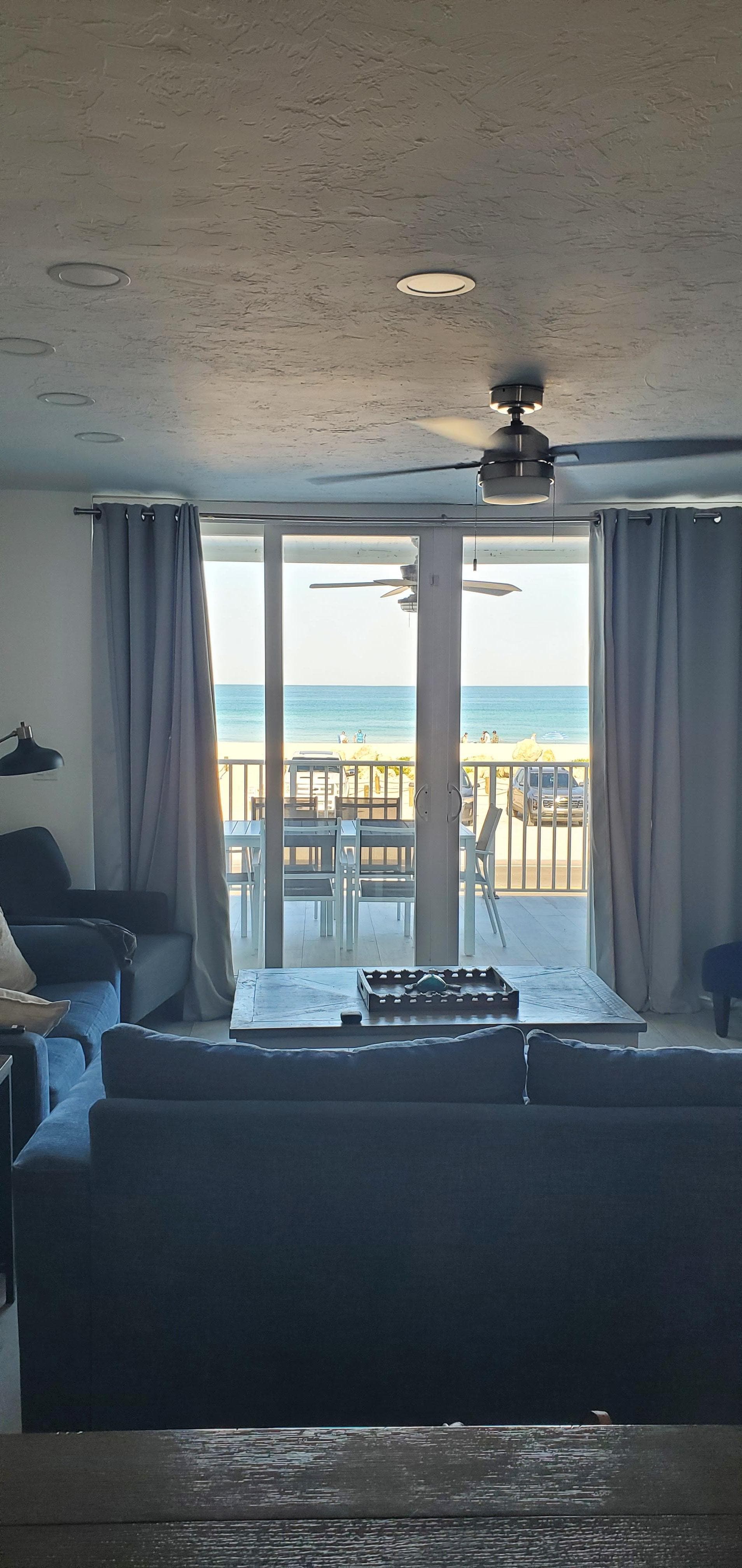 In the open living and dining area, bleached wood floors and chic gray sofas (1 sleeper sofa) create an elegant yet laid-back, comfortable space to kickback. The large flat screen television is equipped to stream your favorite TV show or a great movie. Sliding glass doors frame the gulf views and allow access to the large, private deck with an outdoor dining table. This is the ideal place to bring your morning mug of coffee in the morning while you watch the sunrise over the gulf and feel the gentle sea breezes.