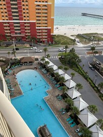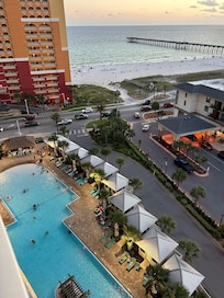 Very clean. Great view of the beach, ocean and sunset. As well as Pier Park. Loved having a large balcony. You donât usually get that with other condos that are located right on the beach. Even though this was not right on the beach it felt like it with the views. The pool was really nice. And so convenient to our condo. Liked having the tiki bar, coffee shop, ice cream right there. The only issues I had was with the facility. Not our host. Issues were, they changed the pool key code on the second day without letting us know. And when I went down on the day of checkout to get a luggage cart, there was someone there collecting drives license/ID to take a cart. This was a little frustrating since I came all the way down to get one without my ID. So I had to go back to the room. This wouldnât bother me if I had known before. But there wasnât anyone there when we checked in or even the whole time we were there collecting IDâs until the day we were leaving. Carts were just free to take at all times. Again these were issues with the resort, not our condo host. So I still give this 5 stars. Just hoping this helps the next renters.