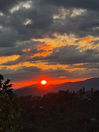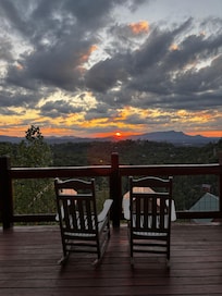 If you've spent the day hiking, outlet shopping, or at Dollywood, you will love the peace and quiet that awaits in Absolute High. Once you enter the cabin, you will be surrounded by the beautiful views from the wall of glass overlooking the mountains. Outside, the deck has various seating and hot tub. The hot tub (drained and sanitized after each guest) is located steps from the French doors. What a great place to sip your morning coffee or evening cocktail, to see the sunset over the mountains, or to view the Dollywood fireworks on summer nights.