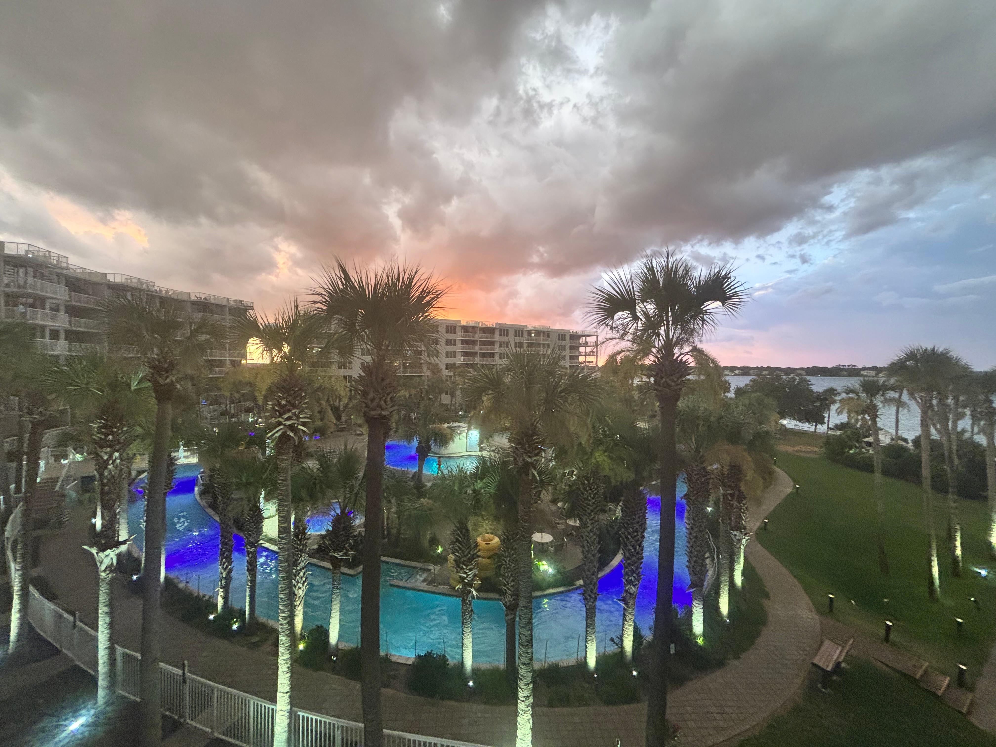 This Beautiful Bay Front Condo has been professionally decorated to allow you all the enjoyments of your vacation destination and still bring you all the comforts of home. The corner unit has spectacular views overlooking the Award Winning Lazy River Lagoon Pool and Choctawhatchee Bay. Sit back and relax on your private balconies watching activities on the bay and you may even spot a school of dolphins. The views from this unit at night bring the Lazy River to life with a fantastic array of light!