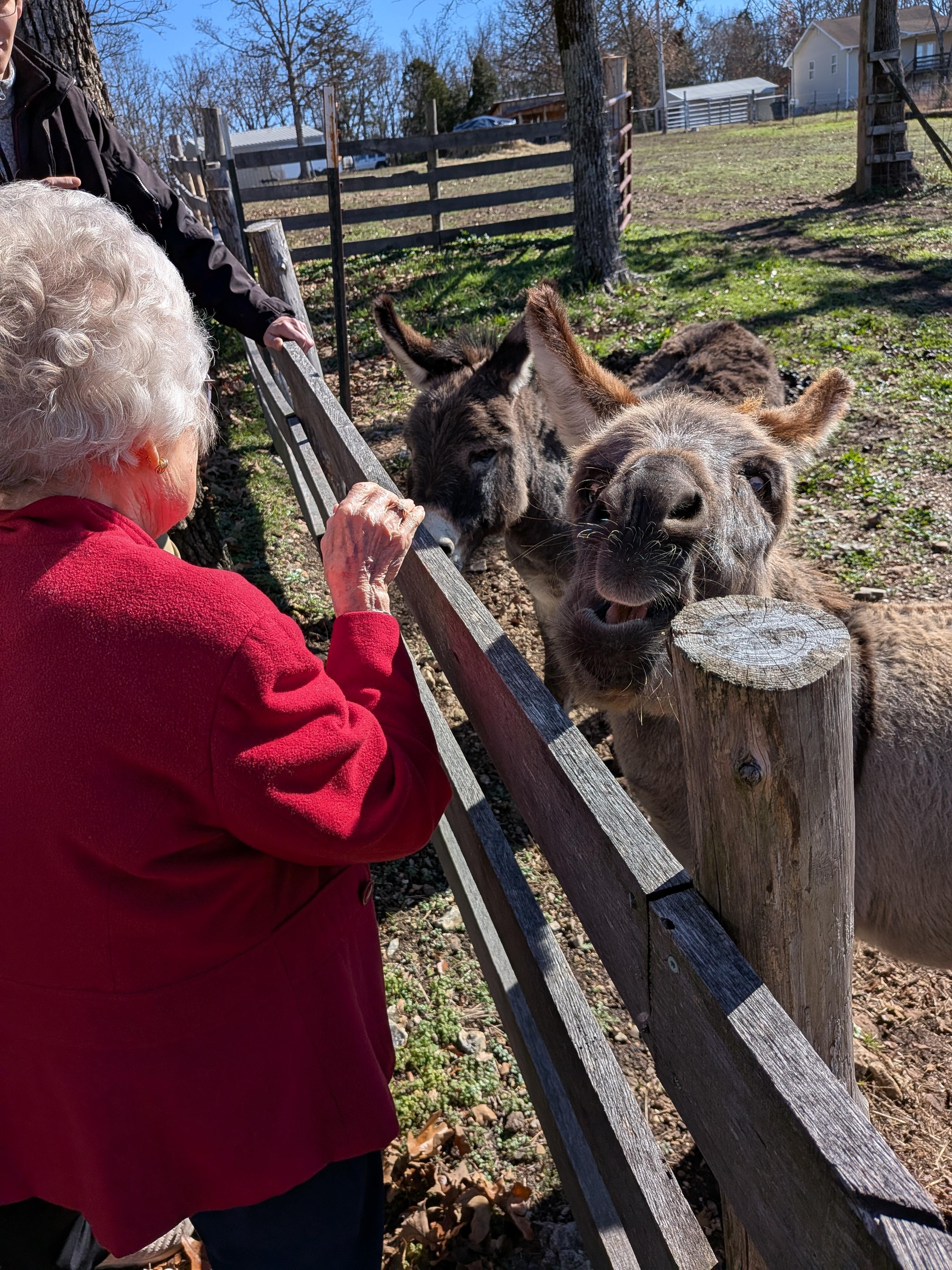 Everyone loves our resident donkey's, Moses and Odie, along with the goats, the sounds of the rooster crowing and the kids like helping Cyndi gather the eggs from the chicken coop!