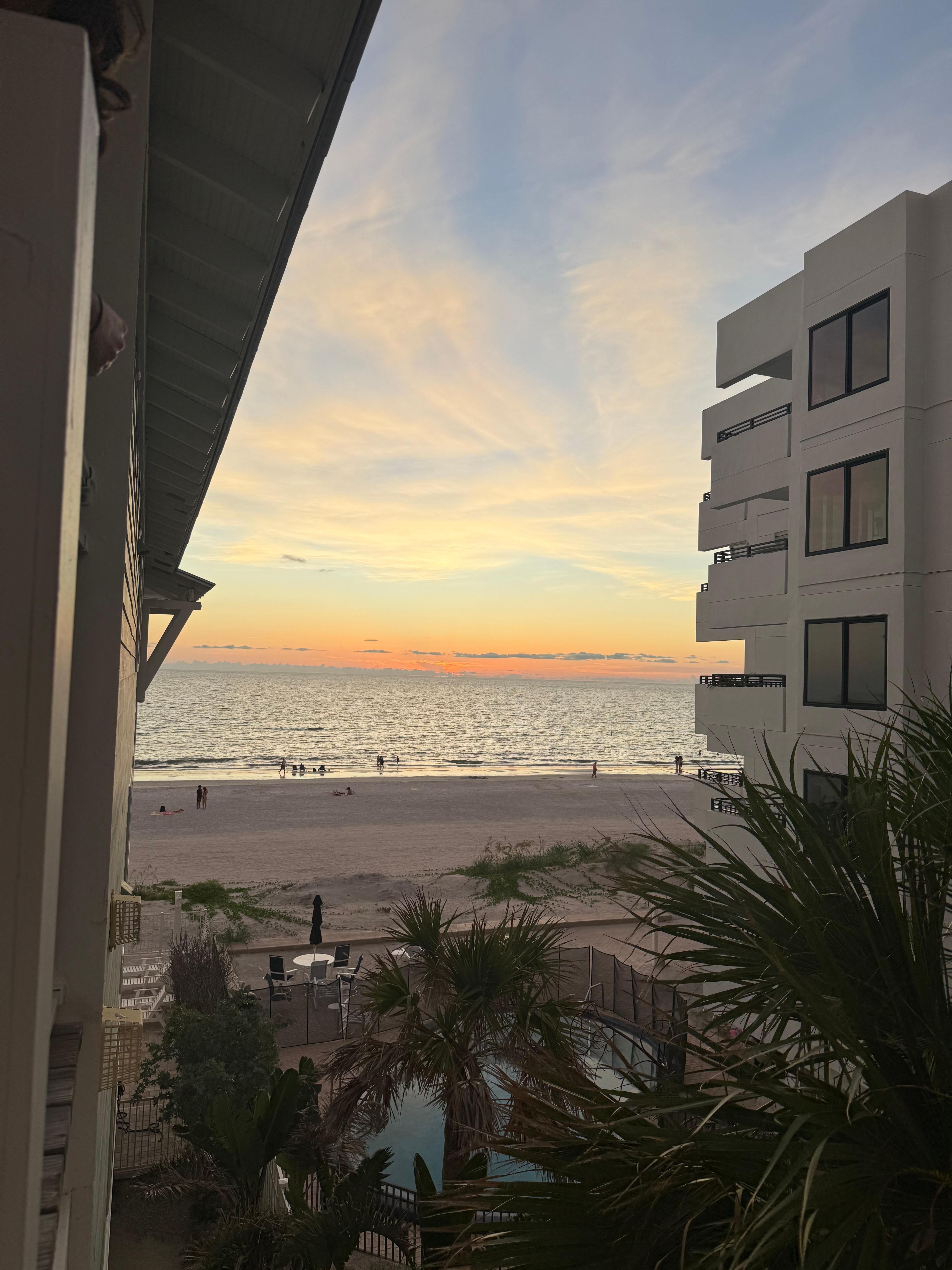 Close to ice cream shops, cafes and eateries and trolley. Food market and convenience store across the street. Previous renters have been coming back for 11 years!!! Quiet. Has elevator but top floor is also walkable. Cabana for beach storage stocked with toys, chairs and umbrella. Grill by pool area. Comfortable with Key West feel. Very family friendly. Quiet building. Ceiling fans, smoke alarms and A/C in all rooms , nice breeze , double sliding doors to beach view.