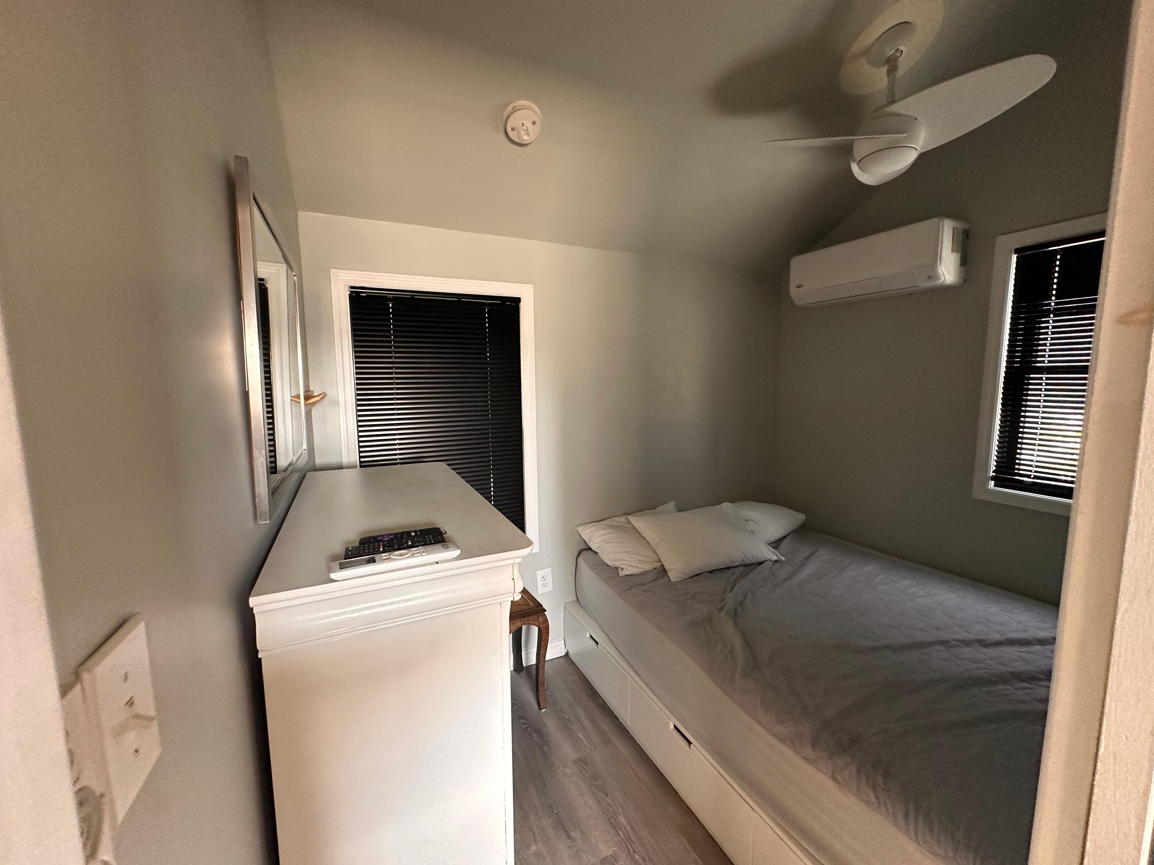 1 bedroom cottage 3 houses from the beach. Located at the rear of our main house. Can accommodate 3 (maximum 2 Adults and 1 child/teenager). Private patio area and outdoor shower. Walk to shops, restaurants, ice cream, mini golf, liquor store, coffee and bagels. Two TVs with Roku, refrigerator/freezer, microwave, toaster oven, Keurig, dishwasher, small all-in-one washer/dryer. AC. 2 Beach Badges. 280 sq ft.