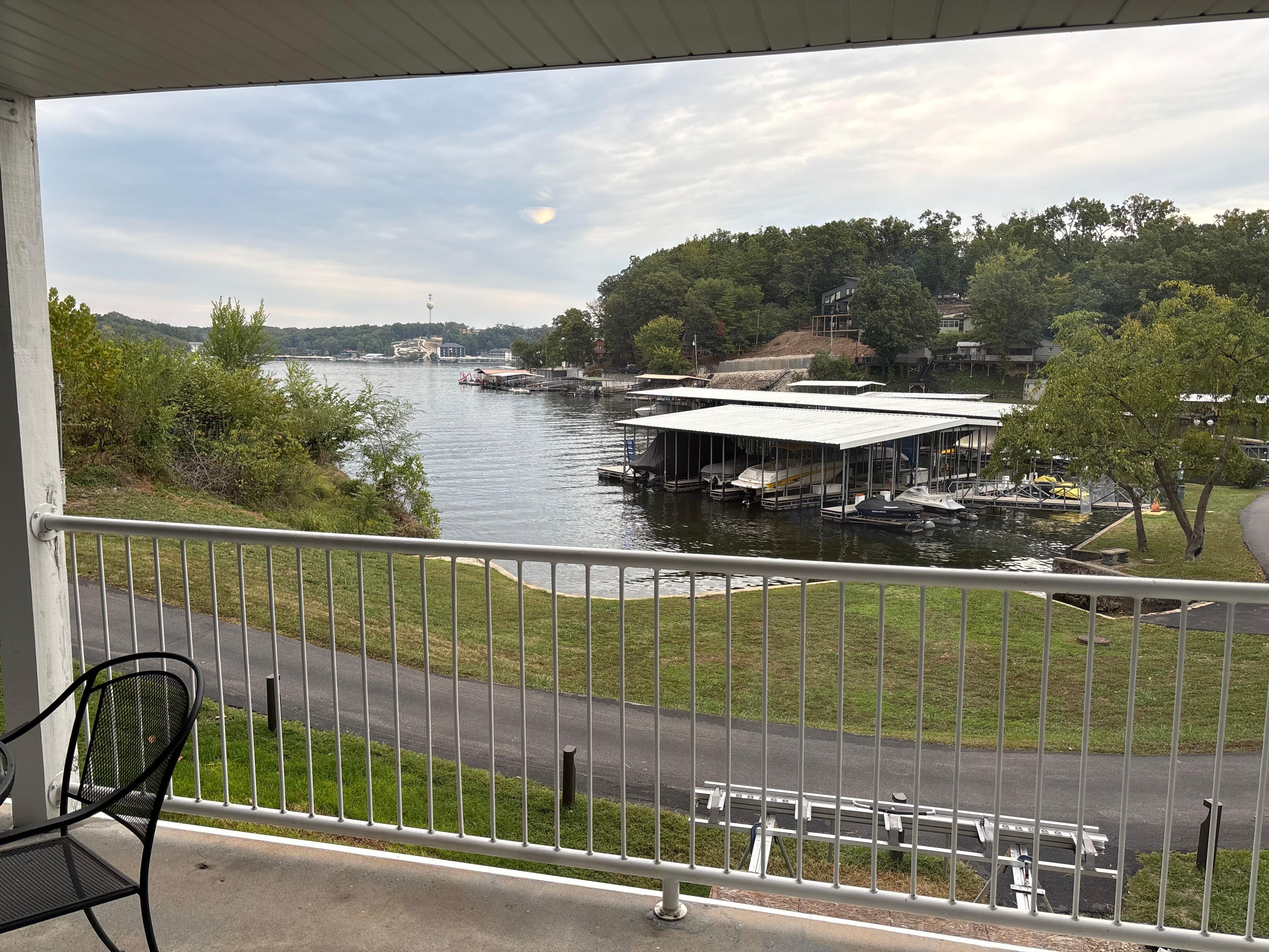 Njut av att titta pÄ bÄtar, vattenskotrar och andra vattensporter medan du kopplar av pÄ vÄr stora privata inglasad balkong. Den stÄr inför 1/2-milmarkeringen av Grand Glaize-armen, som ligger utanför huvudkanalens 19mm.