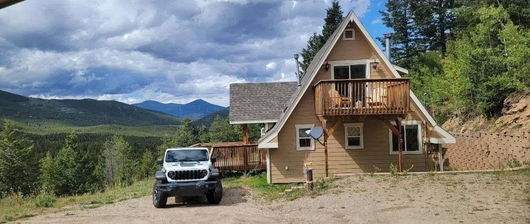 This 3 bedroom 2 bathroom cabin, has it all. The 2 bedrooms upstairs share 1 full size bathroom with a shower and each room has it's own balcony, with magnificent views of the National Forest.