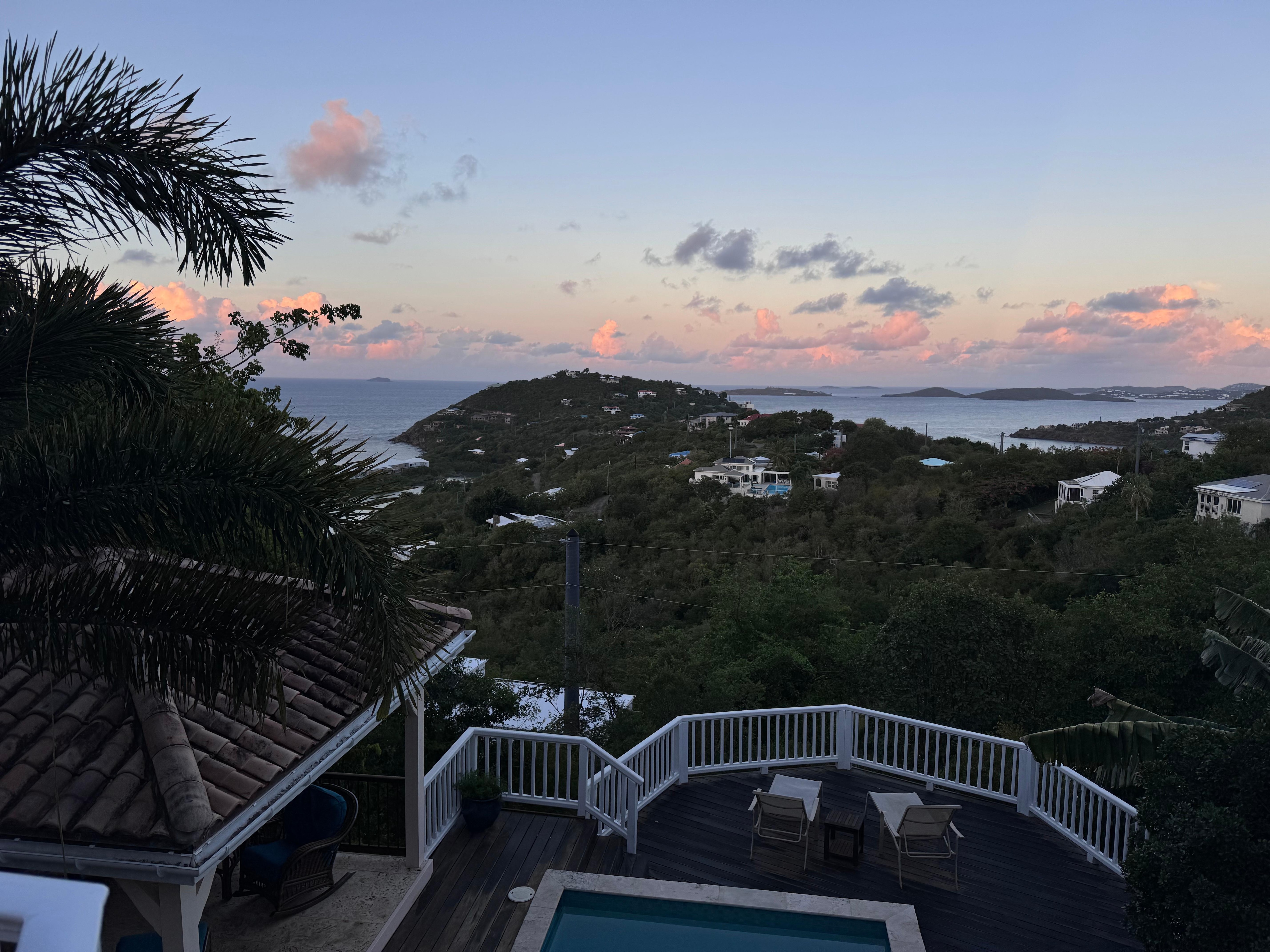 This was our third trip to St John and the first time staying in the Chocolate Hole area. We loved the house, which was so lovely that we had to force ourselves away from our majestic poolside perch in order to go to the beach each day! Comfy beds and a well-appointed kitchen were much appreciated as we are big sleepers and enjoy cooking. Perfectly located in a pretty, quiet neighborhood that is very convenient to Cruz Bay and super easy to get to the north side beaches and Coral Bay side as well. Definitely make sure you rent a 4x4 though, even the main paved roads can become unmanageable when they get even slightly wet.Canât wait to return!