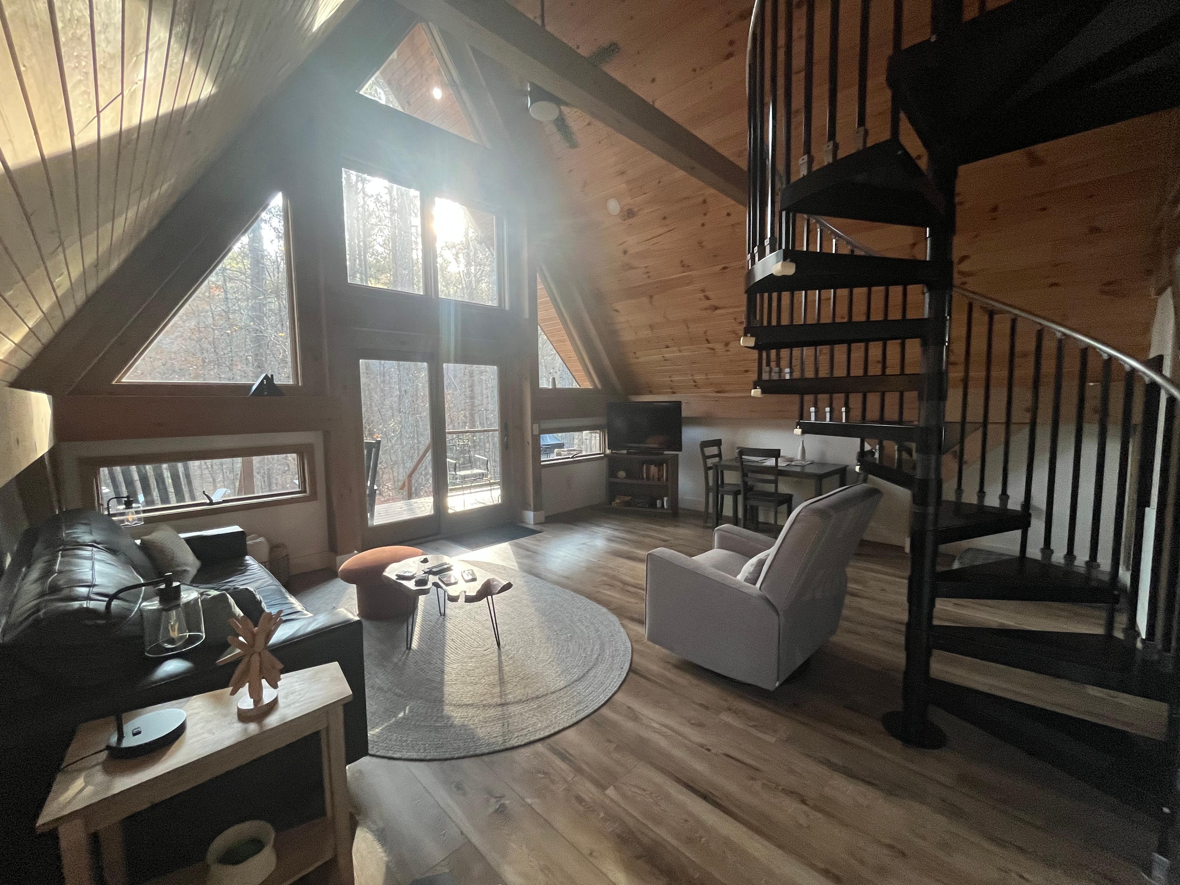 - Cozy, light-filled A-frame with modern charm