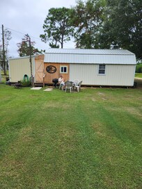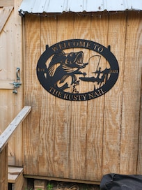 The Rusty Nail Cabin has many extras! Perfect for fishermen with a large yard for boats including power pole and light, with dock and two boat slips. It is also universal for work crews who like to play pool or darts after work. Need ice? Donât worry you will have your own commercial ice machine to fill those coolers! The perfect getaway for a couples retreat as well, with all the amenities of home including a full kitchen, WiFi, Direct TV, and a cozy little porch to relax out on while you grill your favorite food. Three beds, Three TVâs, and even charging stations for your phones. The famous Big Jimâs is only about 6 minutes away! Have your morning coffee out on the dock while you watch the sun rise. Plenty of bass have been caught right off this dock, so bring your fishing poles.