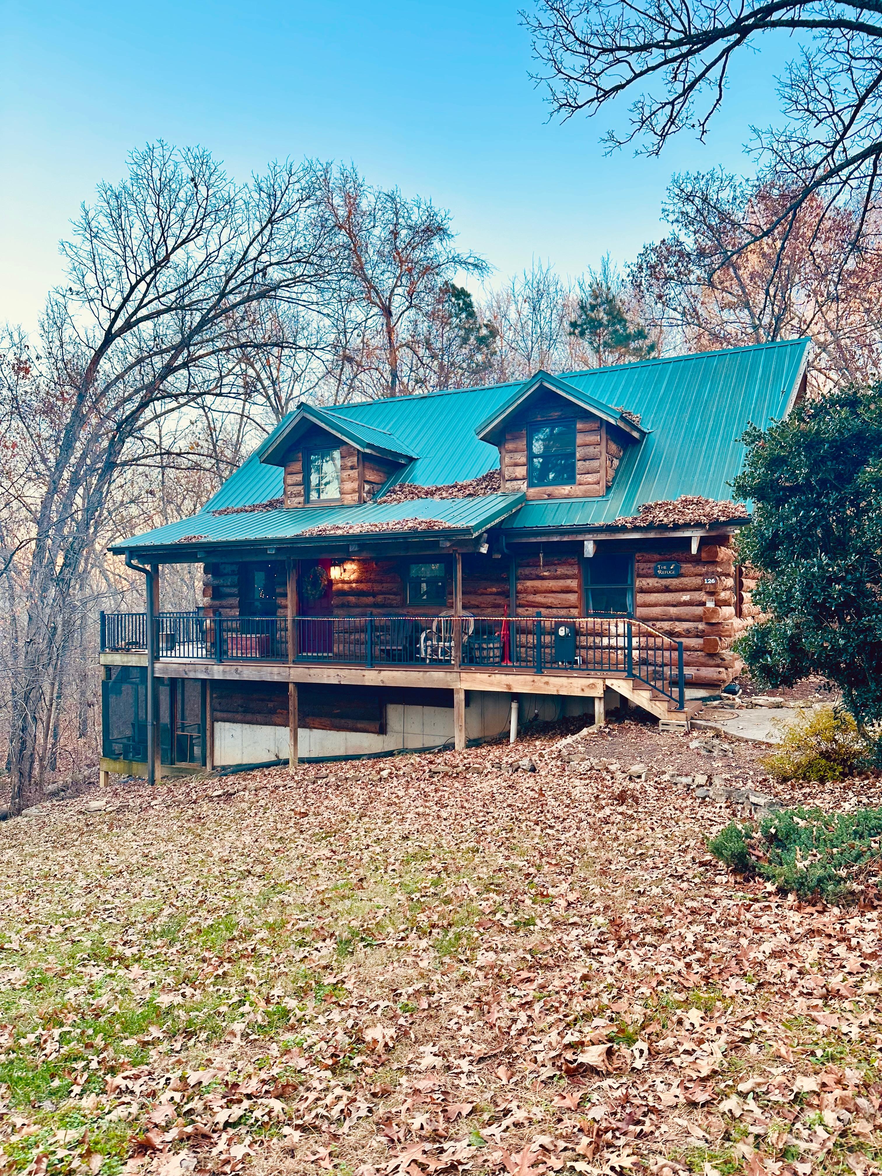 The Refuge ~ ~ denna Engelmann Spruce Log Cabin Àr symbolen för rymlig avskildhet. Detta Àr belÀget i avskild Tall Pines 40 hektar stor egendom utanför UU bara 20 minuter till Branson. The Refuge Àr belÀget i en 40 tunnland lantgÄrd i hjÀrtat av Ozarks och erbjuder 6 unika hem att njuta av medan du Àr semester i Branson Missouri-omrÄdet. Tall Pines Àr avskilt och omgiven av naturen med utomhus badtunnor i varje hus för ultimata avkoppling och lugn. Vi njuter av den lugna landsbygden borta frÄn rörelsen i Branson. En stor nötkreaturgÄrd omger vÄr fastighet. En annan Àr precis tvÀrs över vÀgen. Jag Àlskar korna! NÀstan varje annan Branson-hyra Àr tÀtt mot mÄnga andra, stugor pÄ stugor och lÀgenheter vid lÀgenheter. VÄrt Àr inte nÄgot liknande och vi kommer att behÄlla det pÄ det sÀttet. Vi hedrar landets skönhet. Att njuta av naturen Àr av största vikt. Tall Pines Àr en av de bÀsta platserna vi kÀnner för att njuta av naturen.