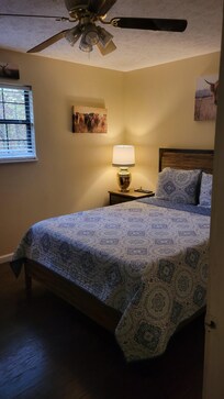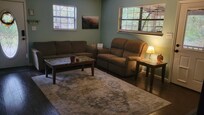 After a day of exploring, come back to the comfort of your private cabin, where you can relax in a spacious yard surrounded by towering trees. Gather around the fire pit for sâmores and stories, breathe in the crisp mountain air, and enjoy the peaceful sounds of nature. Inside, youâll find a warm and welcoming space with two cozy bedrooms, a full bathroom, and all the comforts of home.