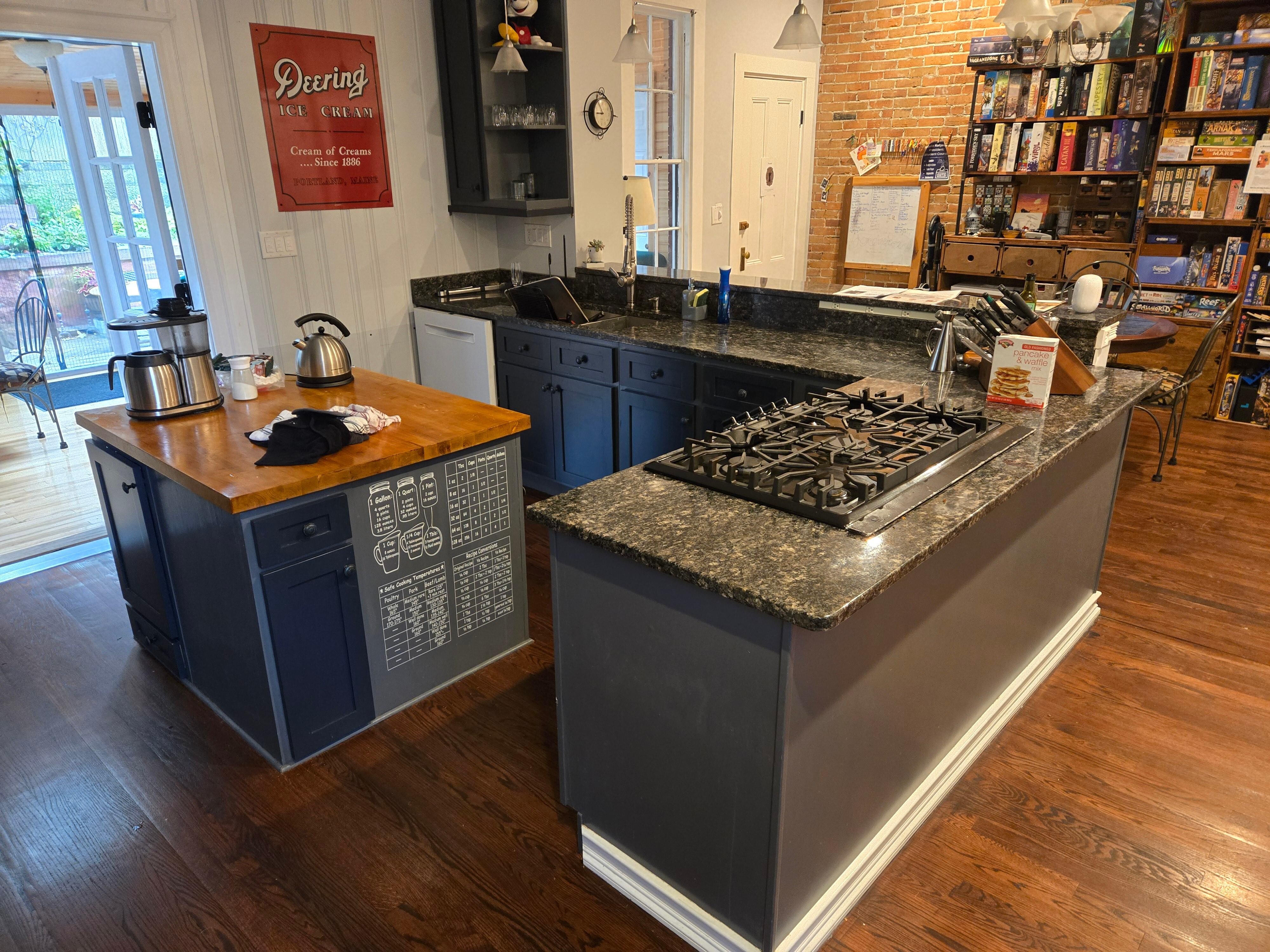 Two bedrooms, three full baths, fully equipped kitchen, backyard patio in walking distance from everything. Kid-friendly (though not very toddler friendly - lots of stairs, no baby gates)