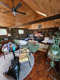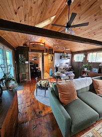 Our home and barn were built in 1880, and we renovated the loft apartment ourselves over the past couple of years. My husband built the deck himself and I've enjoyed decorating with finds from local thrift and antique stores, as well as artwork we have collected at various local events.
