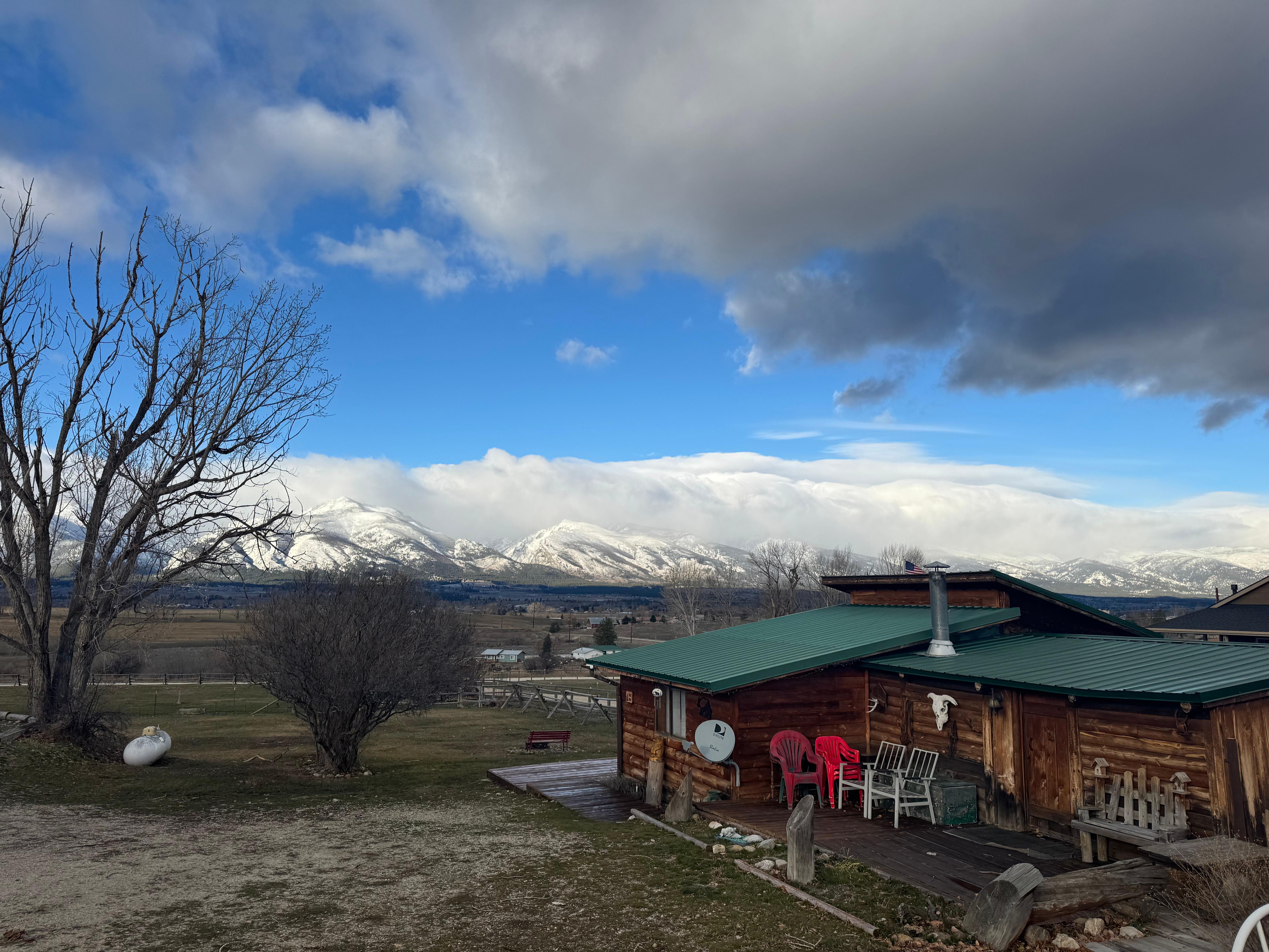 Tre stugor i olika storlekar: "Wolf Den" Àr en stuga med ett rum med komplett badrum, queen size-sÀng, minikök, ytterdÀck för att njuta av den spektakulÀra utsikten. Det Àr perfekt för ett par som vill ha en romantisk och privat gömstÀlle. FörestÀll er bara er tvÄ som har en kopp kaffe ute pÄ dÀck och njuter av soluppgÄngar och solnedgÄngar bakom bergen pÄ bÄda sidor om stugan. Utsikten Àr hisnande. Den har till och med en elektrisk eldstad för en romantisk atmosfÀr pÄ kvÀllen. Det finns en futon i kabinen för extra gÀster vid behov. Kabinen levereras med alla sÀngklÀder, handdukar och pappersprodukter. För matlagning Àr kabinen försedd med diskar, koppar, bestick och köksredskap, grytor och kokkÀrl. Miniköket bestÄr av ett litet kylskÄp, mikrovÄgsugn, brödrost, tvÄ brÀnnare kokplatta och kaffebryggare med kaffe och filter medföljer. Gratis Wi-Fi och DirectTV-satellit ingÄr. Semesterkabin ligger mycket nÀra Hamilton dÀr det finns shopping, restauranger, kyrkor, bensinstationer och andra aktiviteter att vÀlja mellan. Bitterroot River Àr bara 3 miles away med fisketillgÄng och det finns Calf Creek Wildlife Management-omrÄdet bara ett par mil lÀngs vÀgen med jaktÄtkomst. Varje stuga har sin egen utomhusgrill och eldstad för att njuta av aktiviteter utanför. Varje stuga Àr dekorerad med de ursprungliga akvarellmÄlningarna och reproduktioner av begrÀnsad upplaga av medÀgare / professionell konstnÀr, Tracy Rose Moyers. Husdjur beaktas men mÄste godkÀnnas av ledningen först. Stugorna ligger i ett lantligt omrÄde men inom nÄgra minuter frÄn Hamilton och Corvallis, som har mÄnga affÀrer, restauranger, livsmedelsbutiker och aktiviteter i överflöd. Bara 20 minuter frÄn stugorna ligger den vackra, uppfriskande Comosjön som har en sandstrand och badplats. Ta med din bÄt sÄ kan du starta din bÄt och Äka vattenskidor, jetski eller bara Äka.