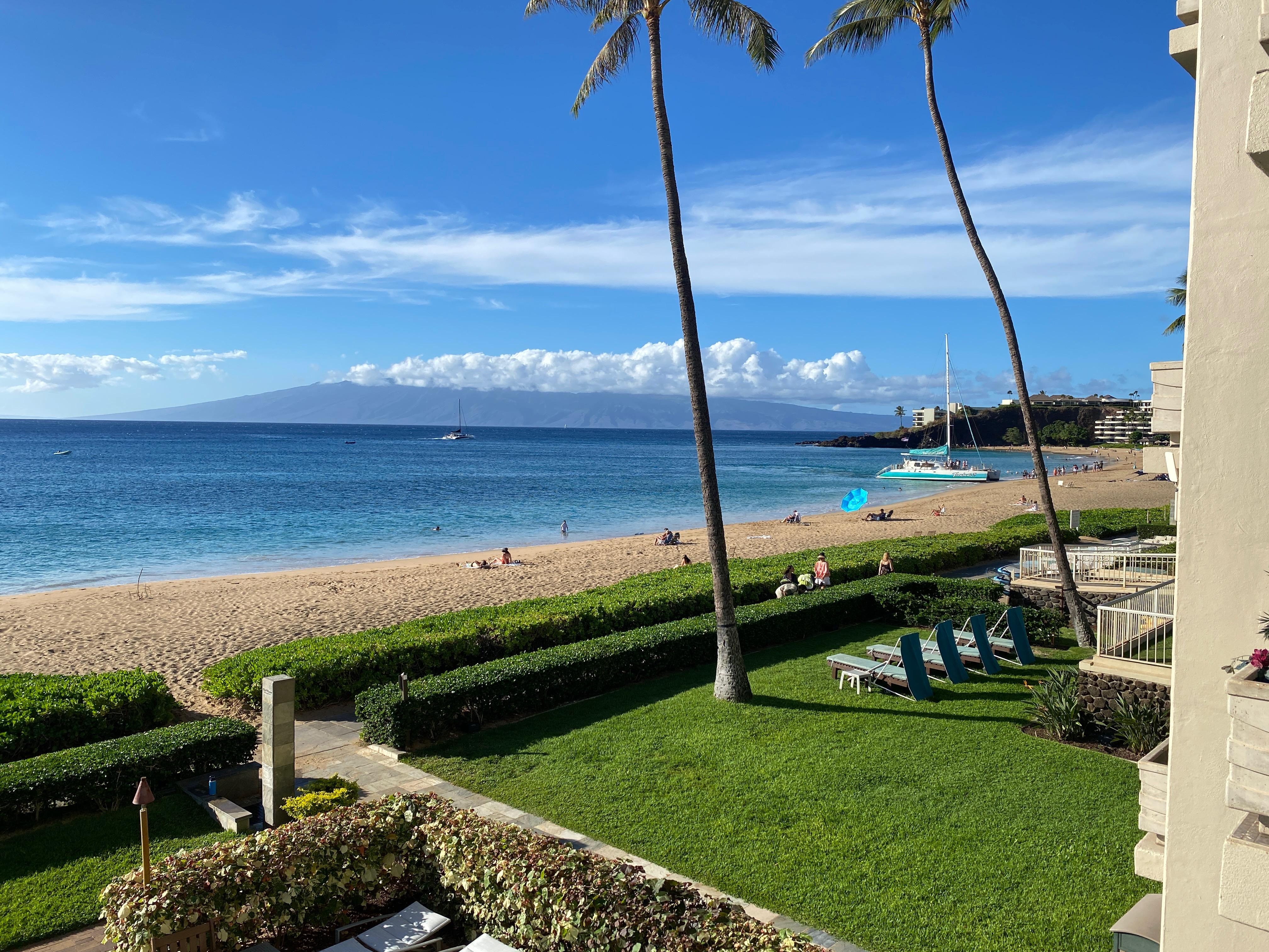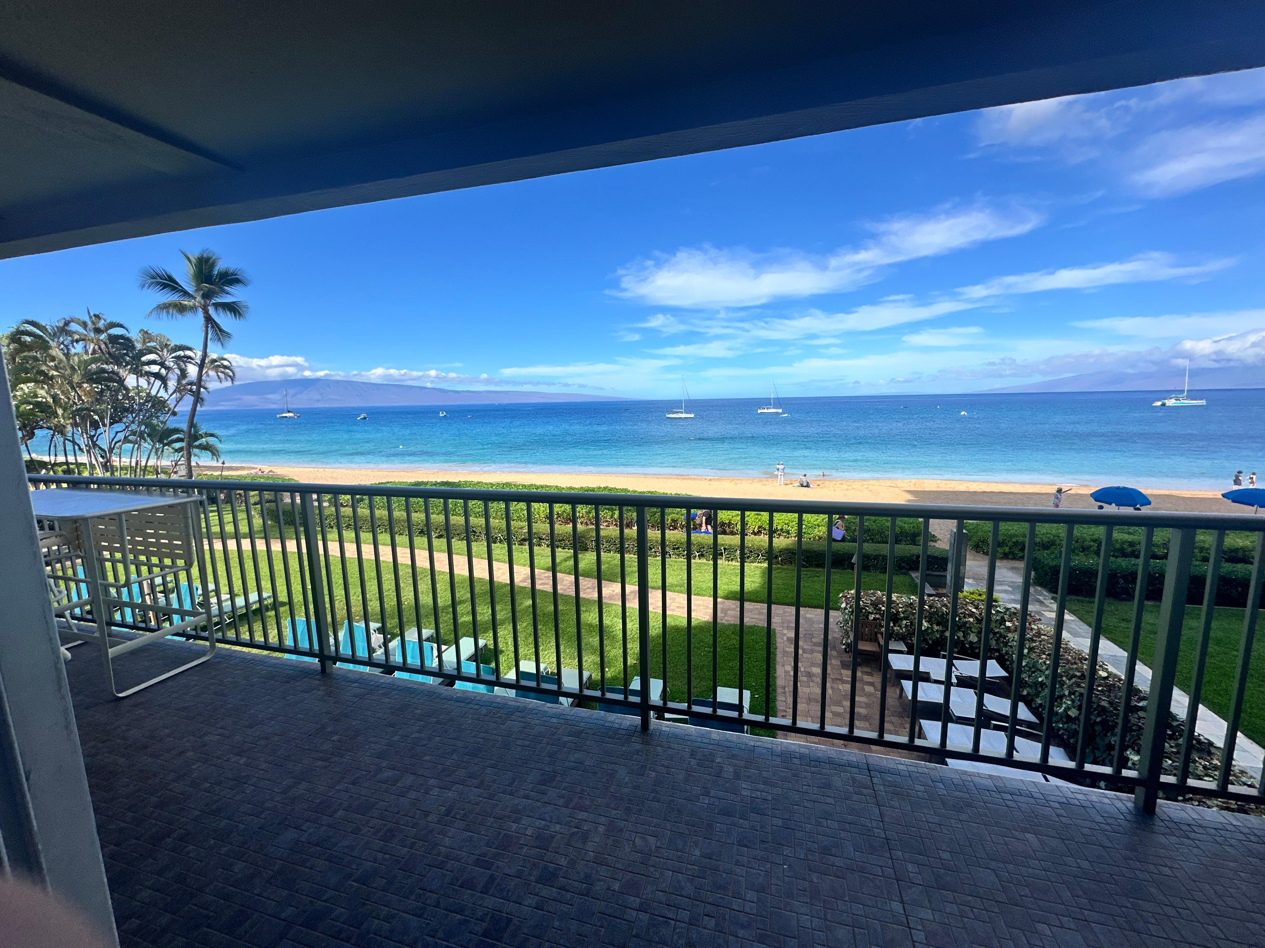 Detta vackra ett sovrum och tvÄ badrum Àr rökfria OCEANFRONT villa (941 kvm) Àr en av de bÀsta platserna pÄ orten! Det ligger precis pÄ andra vÄningen vetter direkt mot stranden och havet! Med tanke pÄ dess plats Àr poolen, stranden och andra bekvÀmligheter bara nÄgra steg bort! LÀgenheten (enhet 251 i Tower II) har ett kök med bÀnkskivor i granit och apparater i rostfritt stÄl, och mycket mer! Enheten har en king size-sÀng samt en bÀddsoffa och rymmer upp till fyra personer. Njut av den hisnande, fria havsutsikten direkt frÄn din egen personliga lindning runt Lanai (ytterligare 408 kvadratmeter)!
