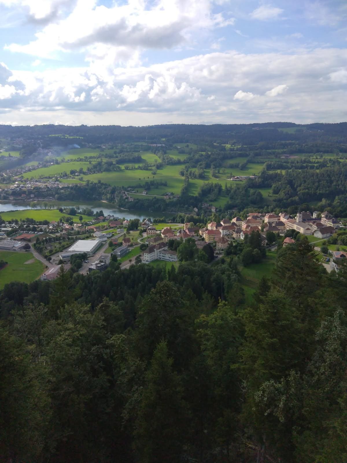 Mycket fin utsikt över Doubs och den schweiziska byn Les Brenets