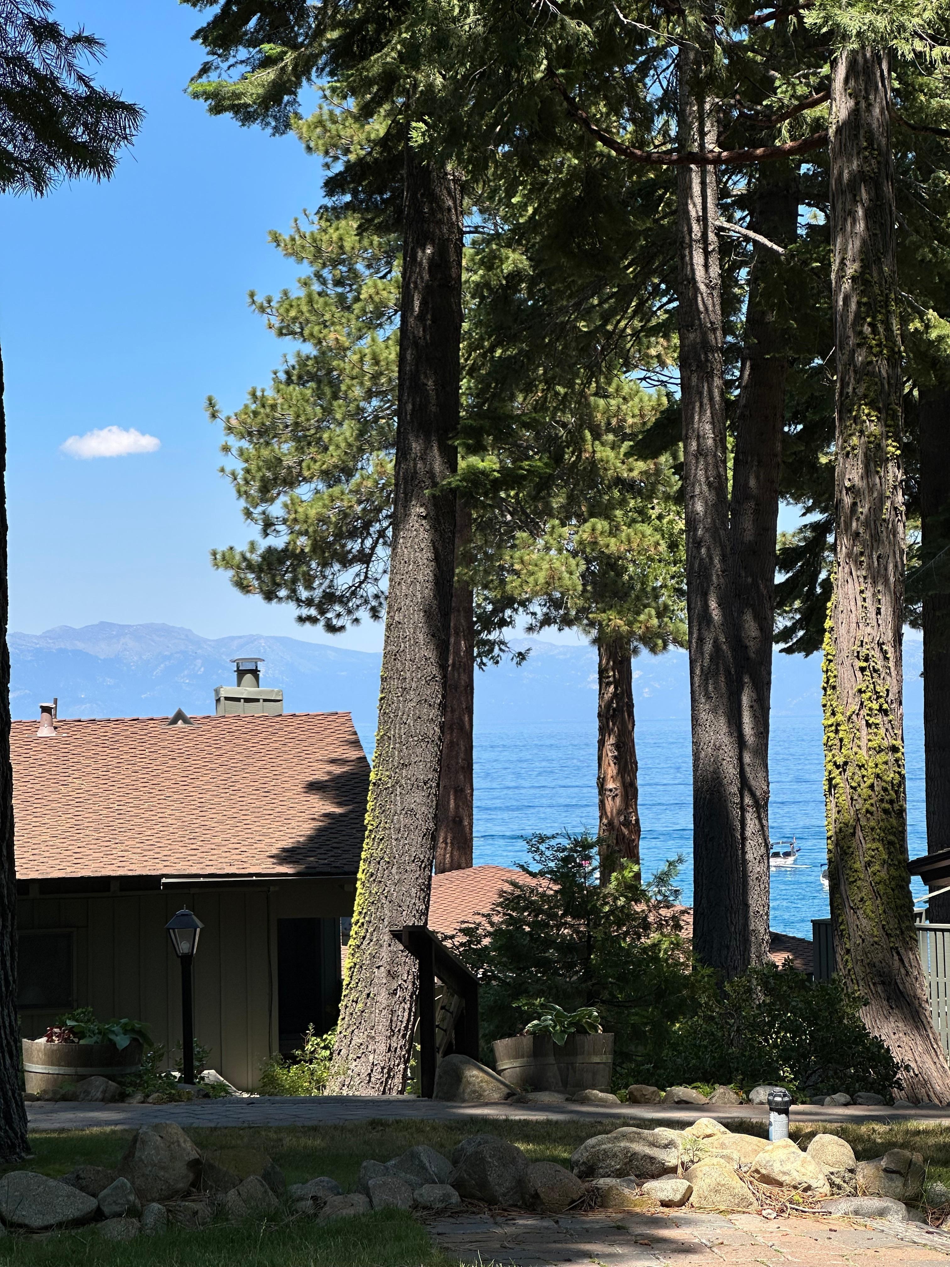 Condo project is located on the lake and the grounds have beautiful trees and landscaping. The atmosphere is quiet and relaxing. A perfect setting for a two week summer vacation in Lake Tahoe. This is our third consecutive year at this project