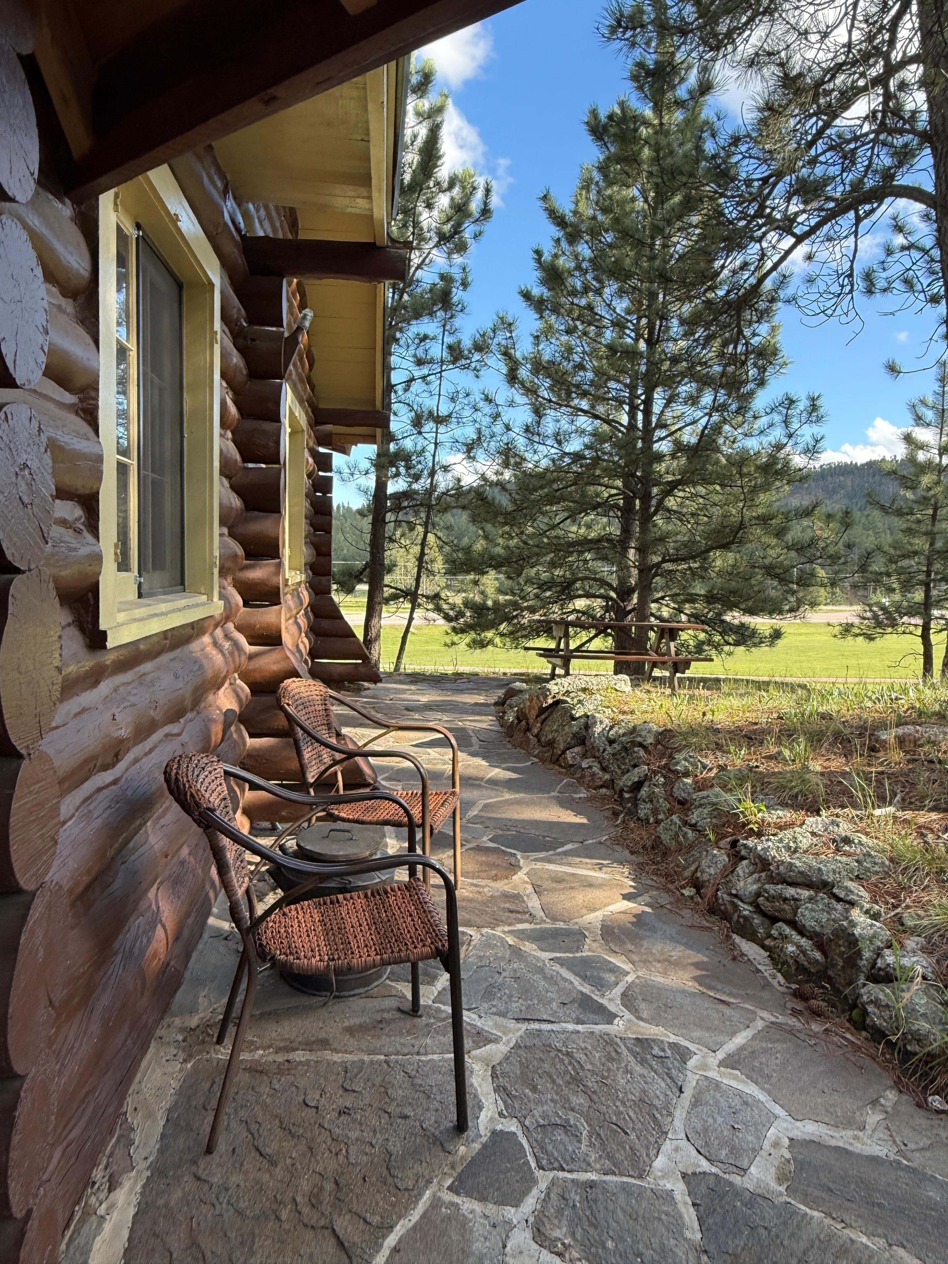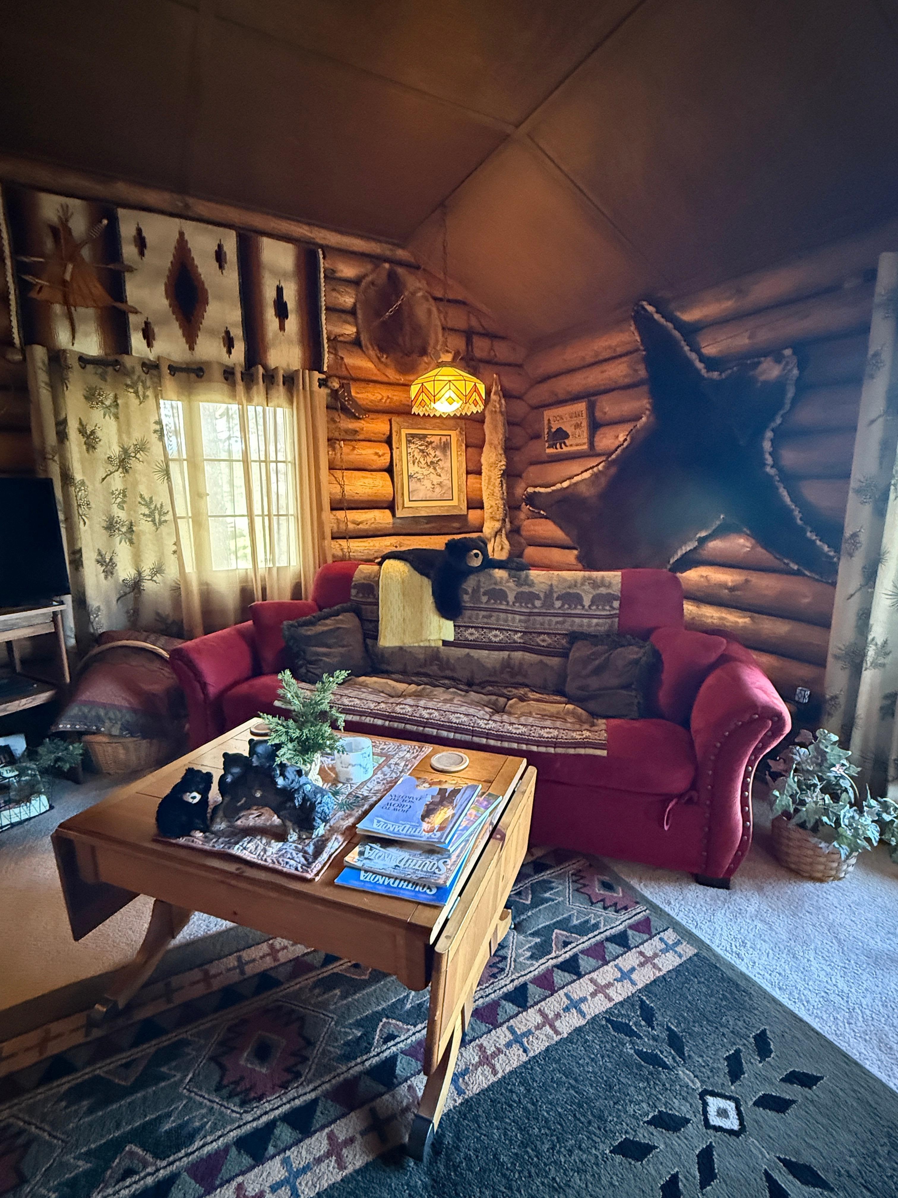 Den ursprungliga stugan byggdes cirka 1930 och förblir trogad i dag till dess början; Men nÄgra Är senare tillkom köket, badet och sovrummet för att erbjuda mer utrymme och de moderna bekvÀmligheterna. TrÀvÀggarna i vardagsrummet Àr hackade med riktigt buffelshud och all inredning hyllar historiens och bosÀttningen i omrÄdet. Vi har visat en samling med indiska relaterade föremÄl och konstverk, samt memorabilia frÄn det gamla vÀst, hemstÀder, jakt och fÄngst ... som alla var en del av Black Hills historia. Stugan ligger pÄ flera tunnland och delar en grÀns med Forest Service och bara cirka 1500 fot frÄn ingÄngen till Custer State Park, en av de största statsparkerna i USA.