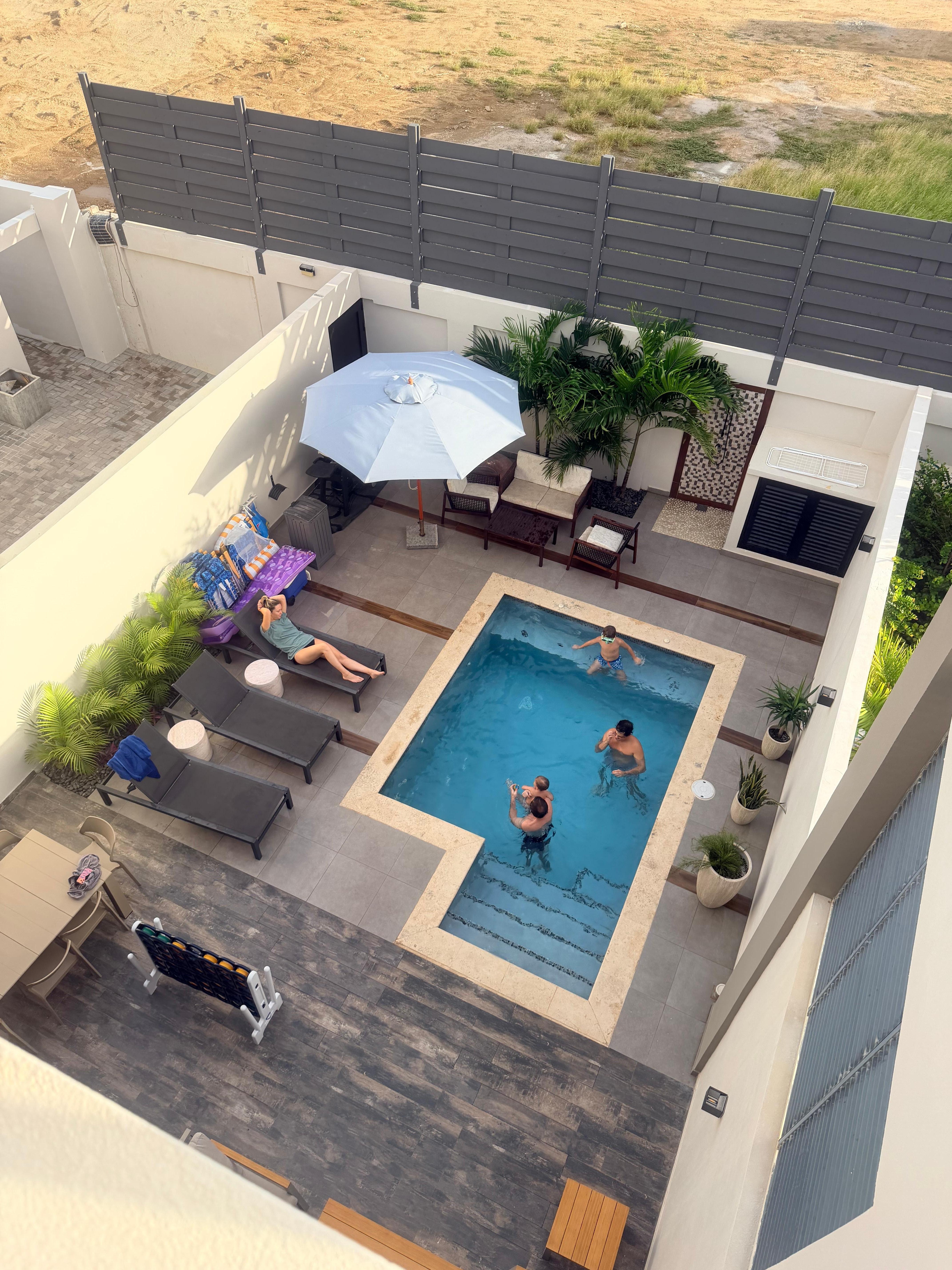 Bo i ett vackert radhus över Boca Catalina-stranden, pÄ gÄngavstÄnd till Tres Trapi, "3 steg" och Arashi-stranden. Radhusen Àr rymliga med högt i tak, stora fönster, fullt utrustat kök, privat pool och ett tak med en vacker utsikt över havet. HÄll dig sval med luftkonditionering i sovrummen och vardagsrummet. Varje radhus bestÄr av 4 sovrum och 4. 5 badrum. TvÄ rum med en dubbelsÀng. Ett rum med 2 enkelsÀngar och 1 sovrum med king size-sÀng. Alla rum har eget badrum med varmt vatten.