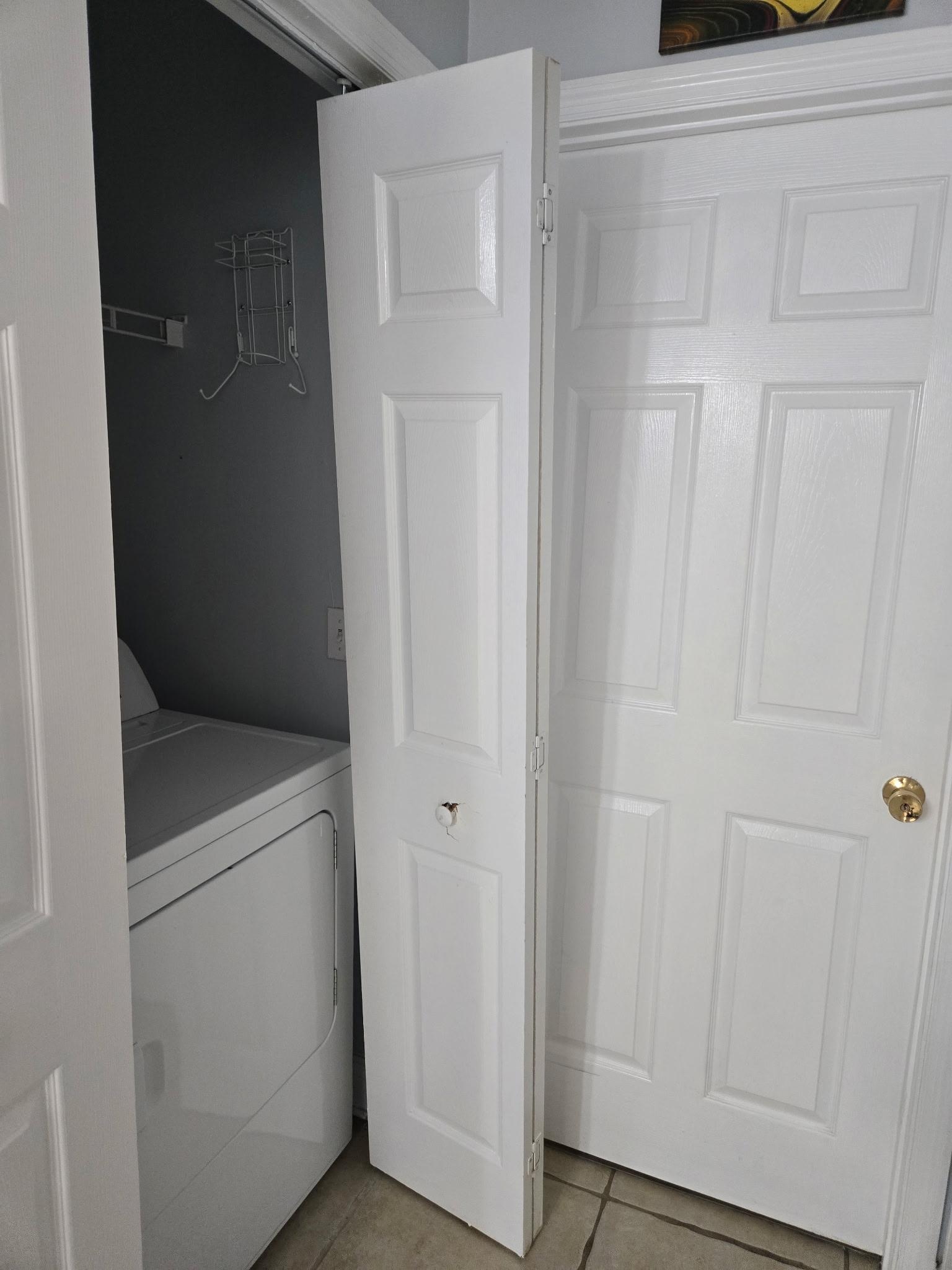 Home was clean, beds were comfortable. Main level bedroom ceiling fan did not work and front dresser drawer panel was broken. Main floor toilet continued to run. (Water leak?)1st bedroom on 2nd floor front dresser drawer panels were broken. Kitchen under refrigerator, cockroach appeared. After using washing machine, clothes had unusual smell. Clothes dryer did NOT work. Clothes were wet after drying with 3 cycles! Ironing board but no iron. These items need attention.