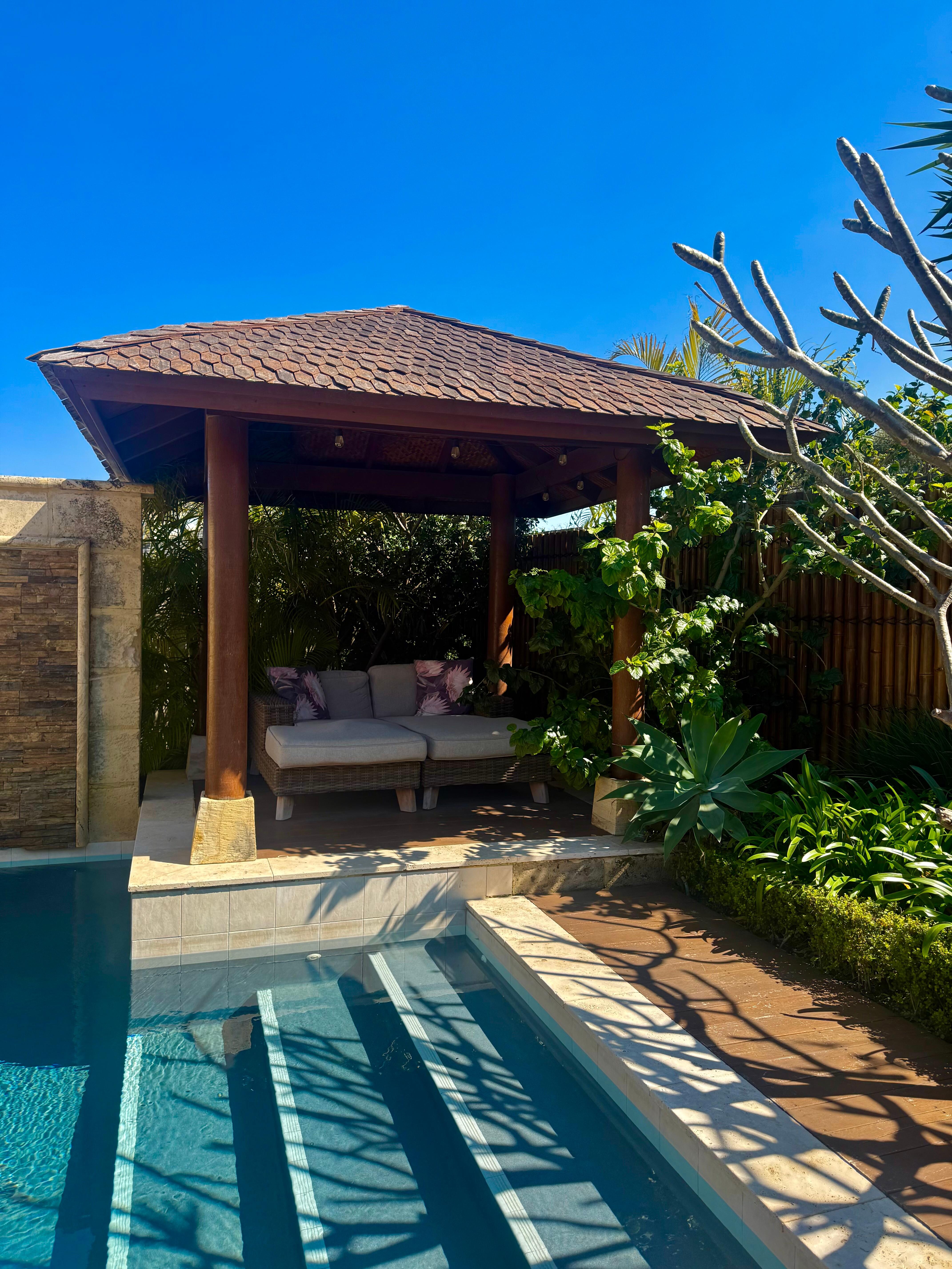* Large Outdoor Patio with Bali Retreat Vibes: Step outside and experience the tranquility of the outdoor patio. Surrounded by lush greenery, it's the perfect spot for morning coffee or evening cocktails. The Bali-inspired design will transport you to a tropical paradise.